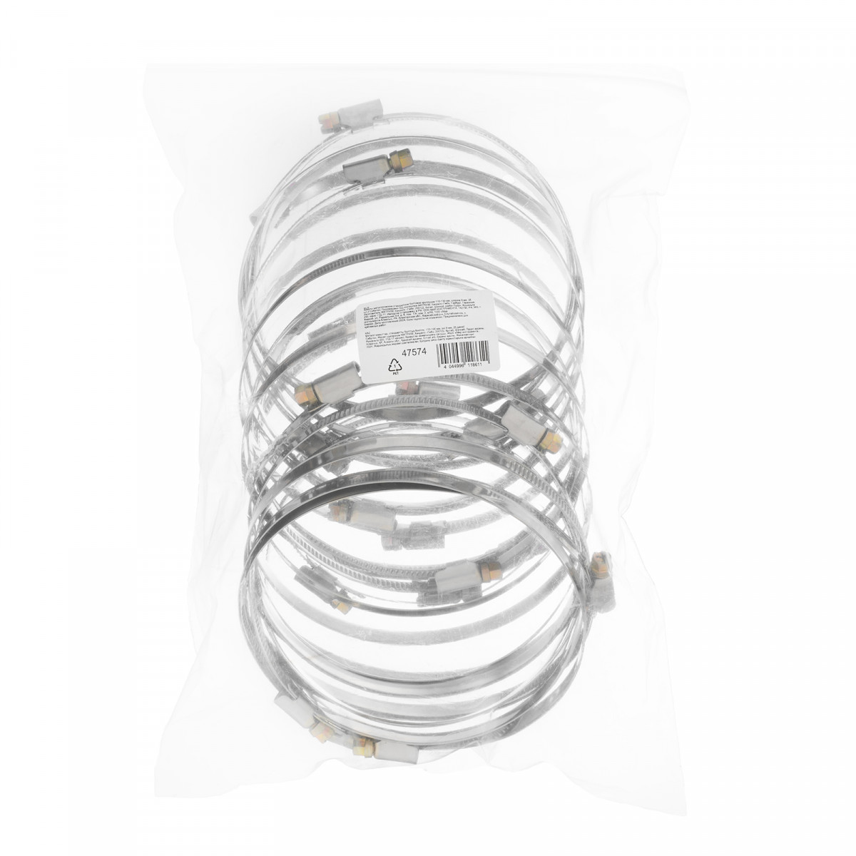 Металлические хомуты Сибртех 47574 со стандартным болтовым креплением, диаметром охвата 110-130 мм и шириной 9 мм, 25 шт. в упаковке, — крепежные элементы для соединения труб и шлангов. Обеспечивают плавную регулировку диаметра обжима, подходят для многократного использования. Строительные стяжки применяют для монтажа водопроводных, отопительных, вентиляционных систем.
