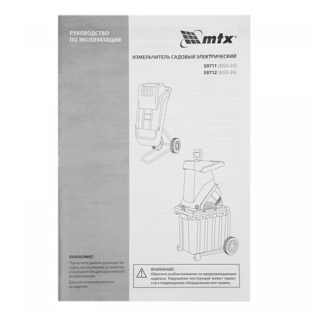 Измельчитель садовый электрический EGS-26, 2600 Вт, 45 мм MTX