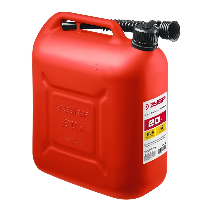 Пластиковая канистра ЗУБР 20 л 38366-20 - легкая герметичная емкость для транспортировки технических жидкостей.