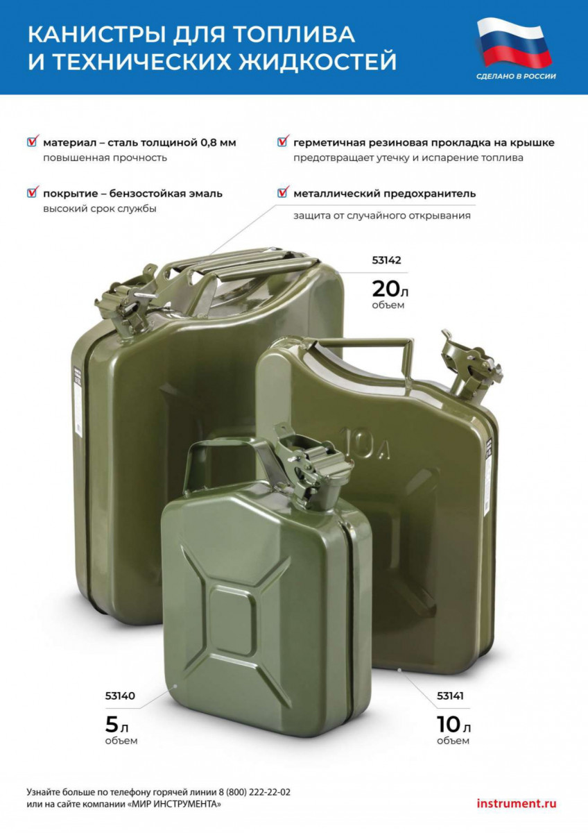 • Герметичность — надежная крышка имеет резиновую прокладку, что предотвращает утечку и испарение топлива.
