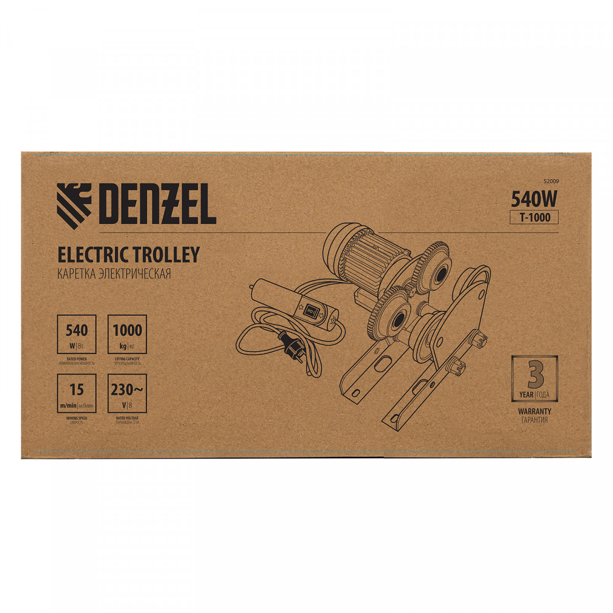 Каретка электрическая для тельфера Т-1000,1 т, 540 Вт Denzel