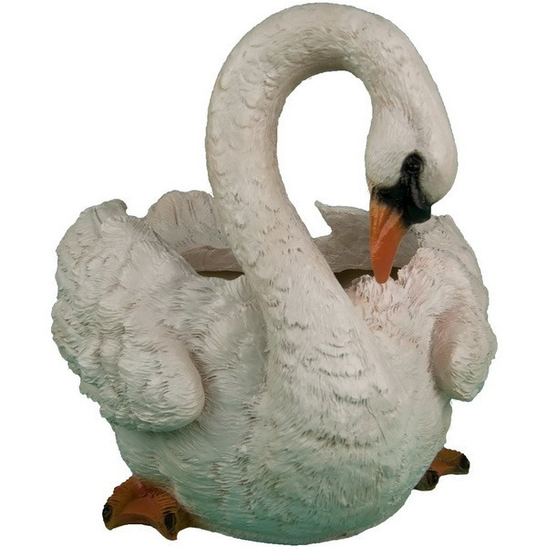 Изысканное декоративное кашпо для сада выполнено в виде белого лебедя. Кашпо станет достойным украшением садового участка и превосходным подарком друзьям и близким.