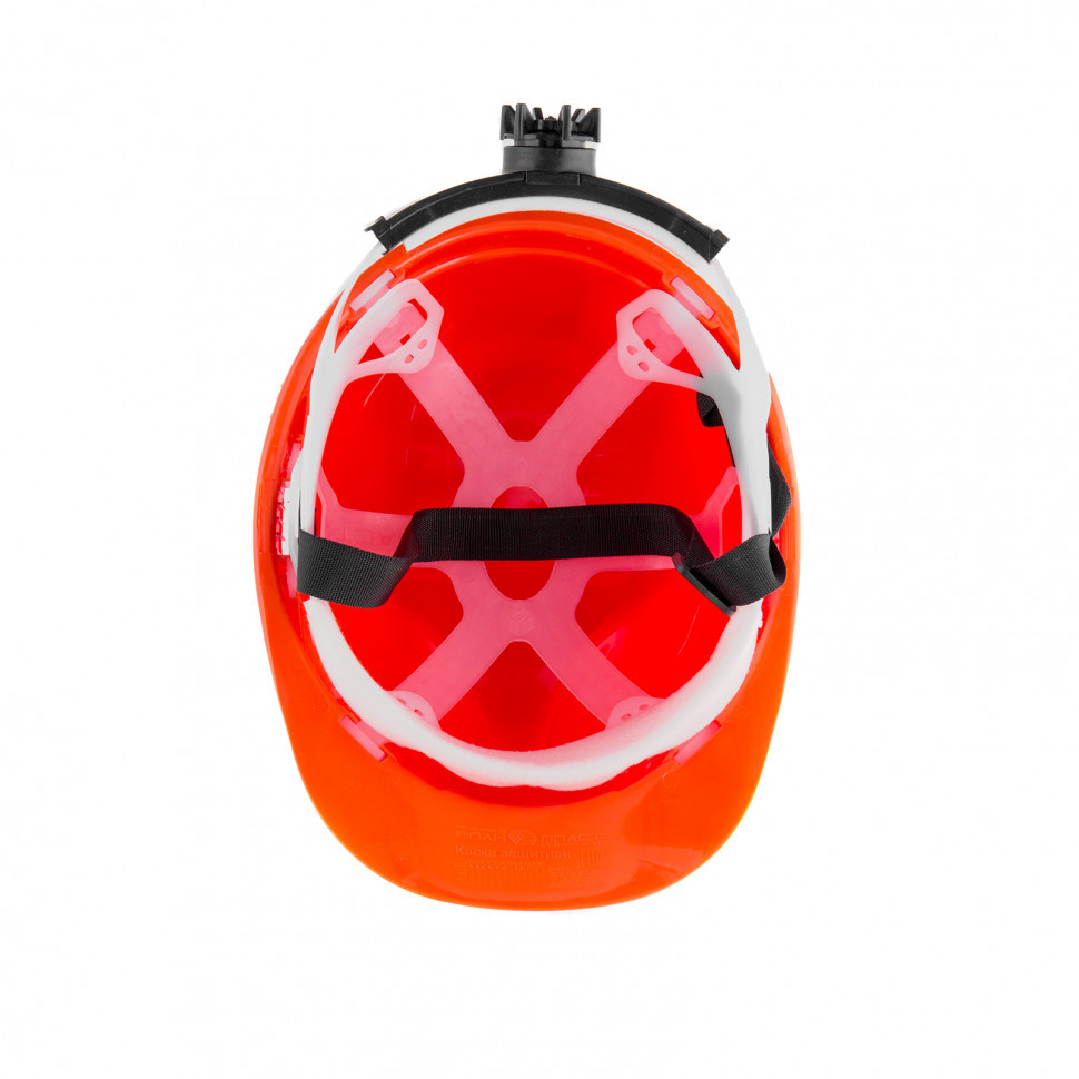 • За счет 6 точек крепления оголовья и ремня каска надежно фиксируется и не слетает с головы.