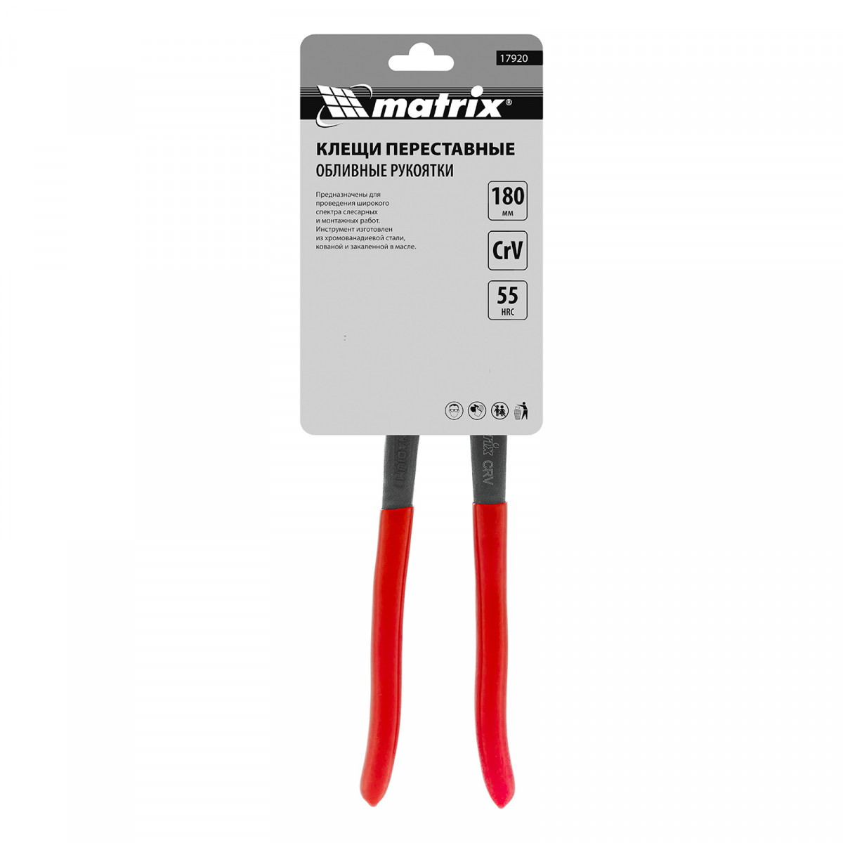 Клещи переставные 180 мм, хром-ванадий, обливные рукоятки Matrix