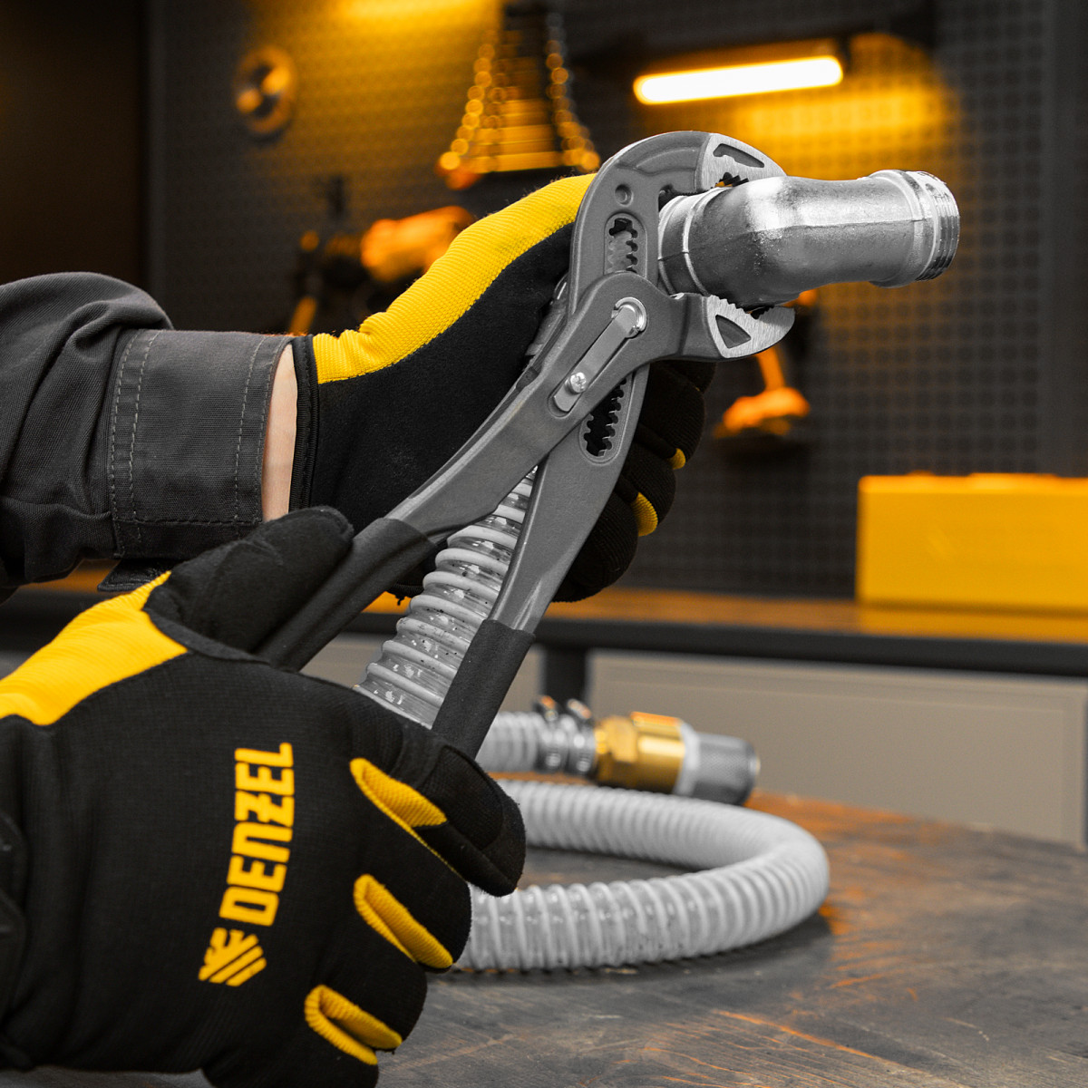 Клещи переставные, кнопочный механизм, обливные рукоятки, 300 мм Denzel
