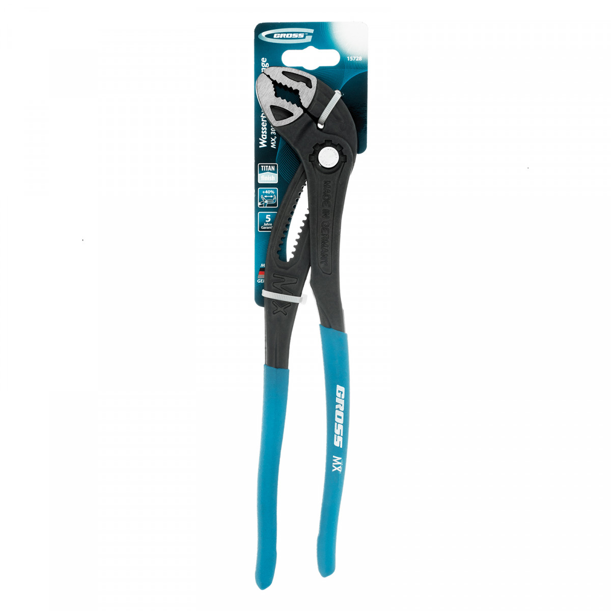 Переставные клещи Gross 15728 длиной 300 мм, с кнопочным механизмом и обливными рукоятками, — профессиональный инструмент для работ с сантехникой, фитингами, трубами и т.д. Рабочие губки с насечками обеспечивают надежный захват изделий диаметром до 65 мм. Клещи удобны для работы в труднодоступных местах.