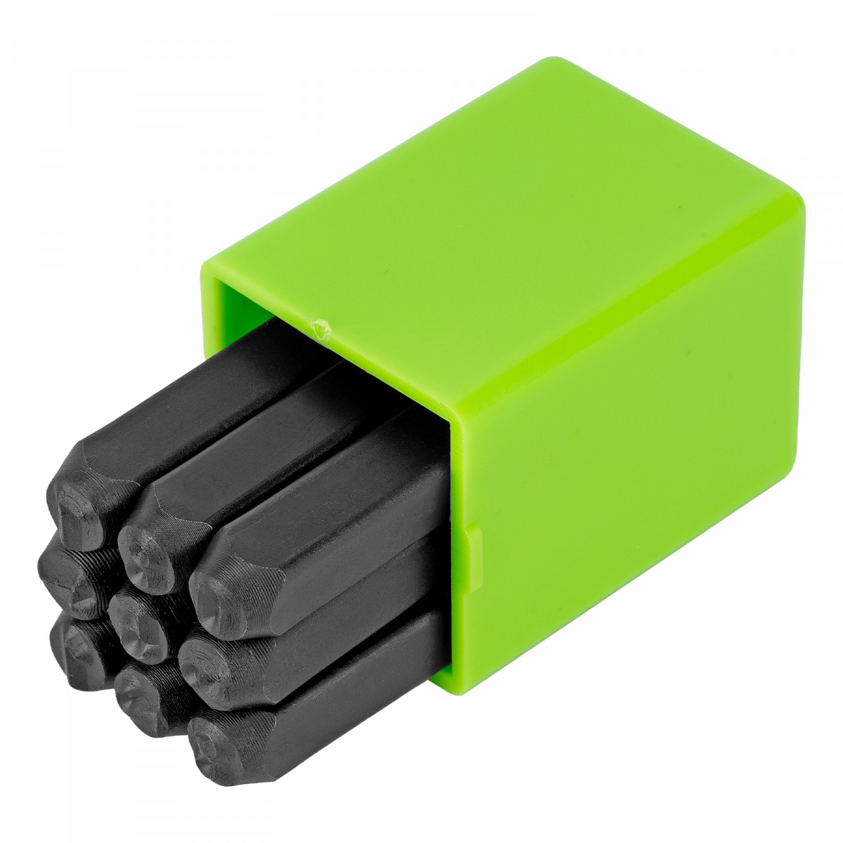 Штамповочные клейма Сибртех 18844 с размером шрифта 5 мм используются для нанесения цифровой маркировки на изделия из металла и других материалов методом ударного воздействия. Изделия обработаны на станках с числовым программным управлением, поэтому отличаются точностью и высокой четкостью получаемых цифр.
