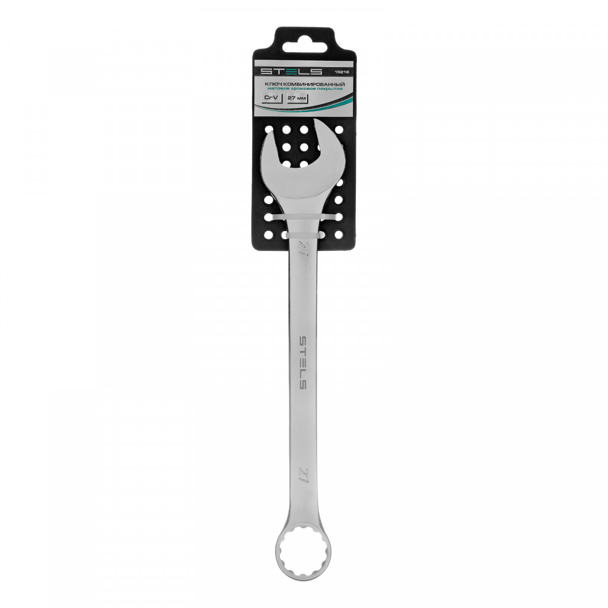 Ключ комбинированный, 27 мм, CrV, матовый хром Stels