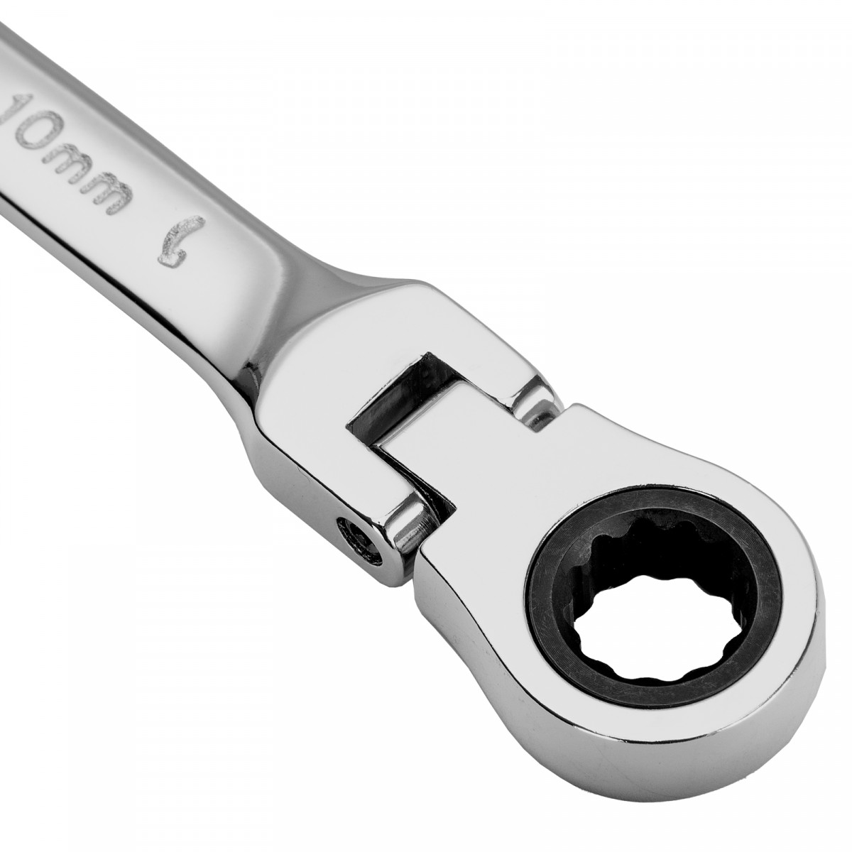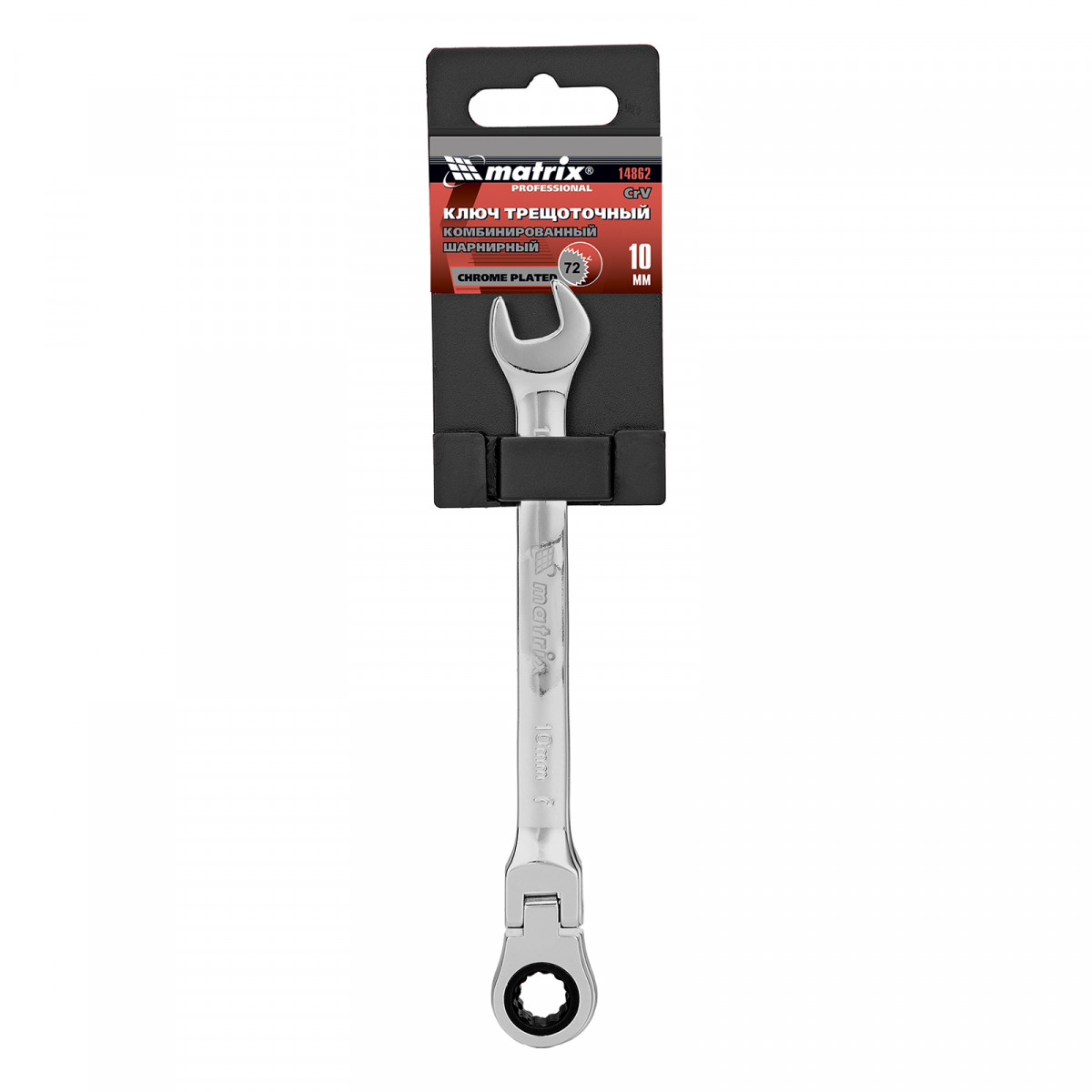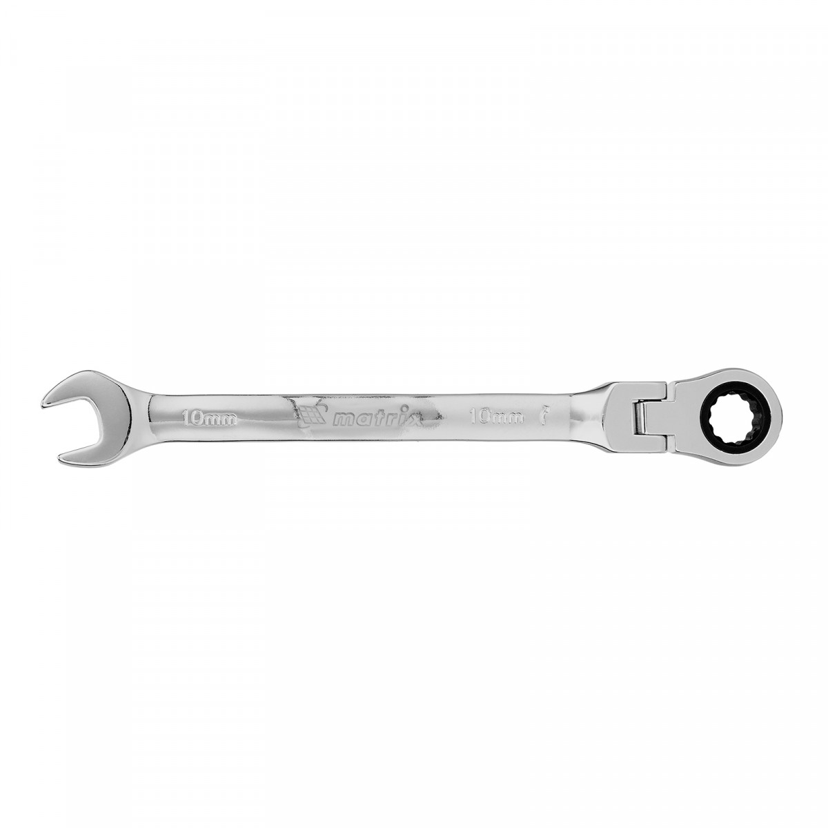 Ключ комбинированный трещоточный, 10 мм, CrV, шарнирный, зеркальный хром Matrix Professional