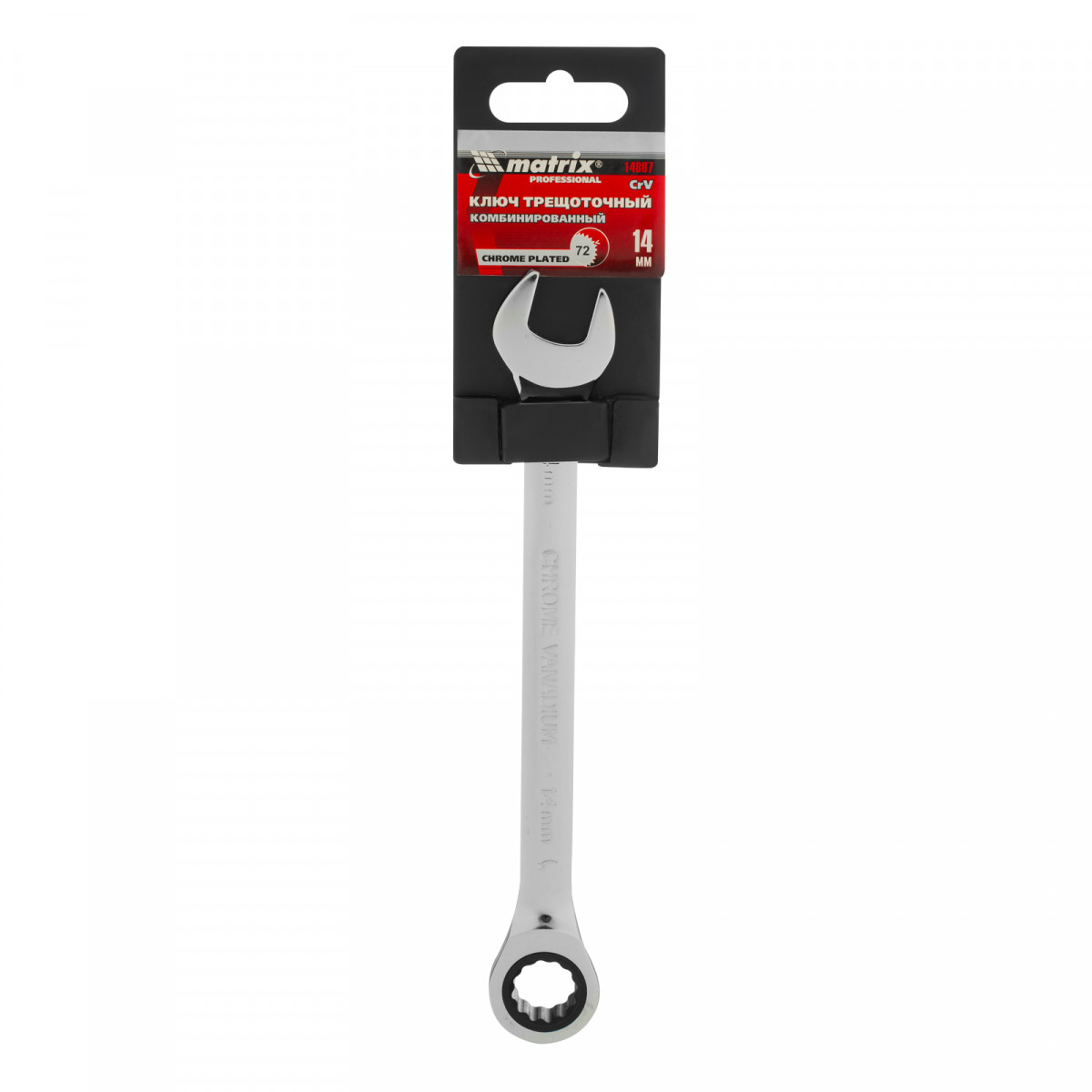 Ключ комбинированный трещоточный, 14 мм, CrV, зеркальный хром Matrix Professional