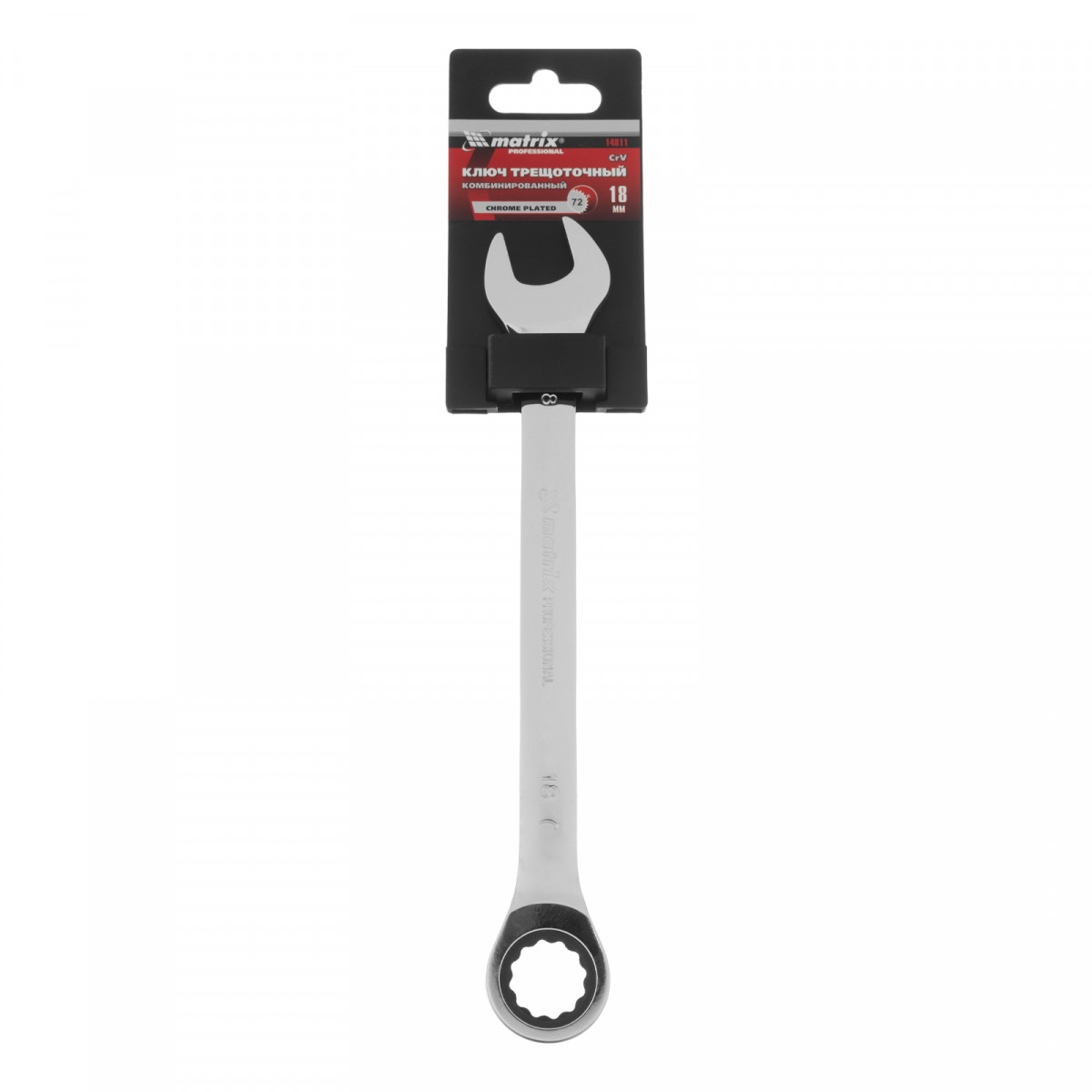 Ключ комбинированный трещоточный, 18 мм, CrV, зеркальный хром Matrix Professional