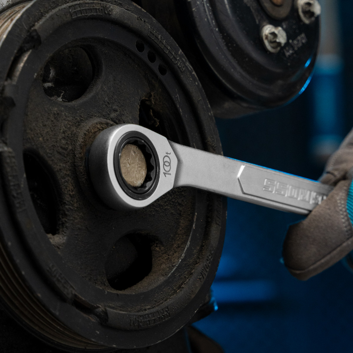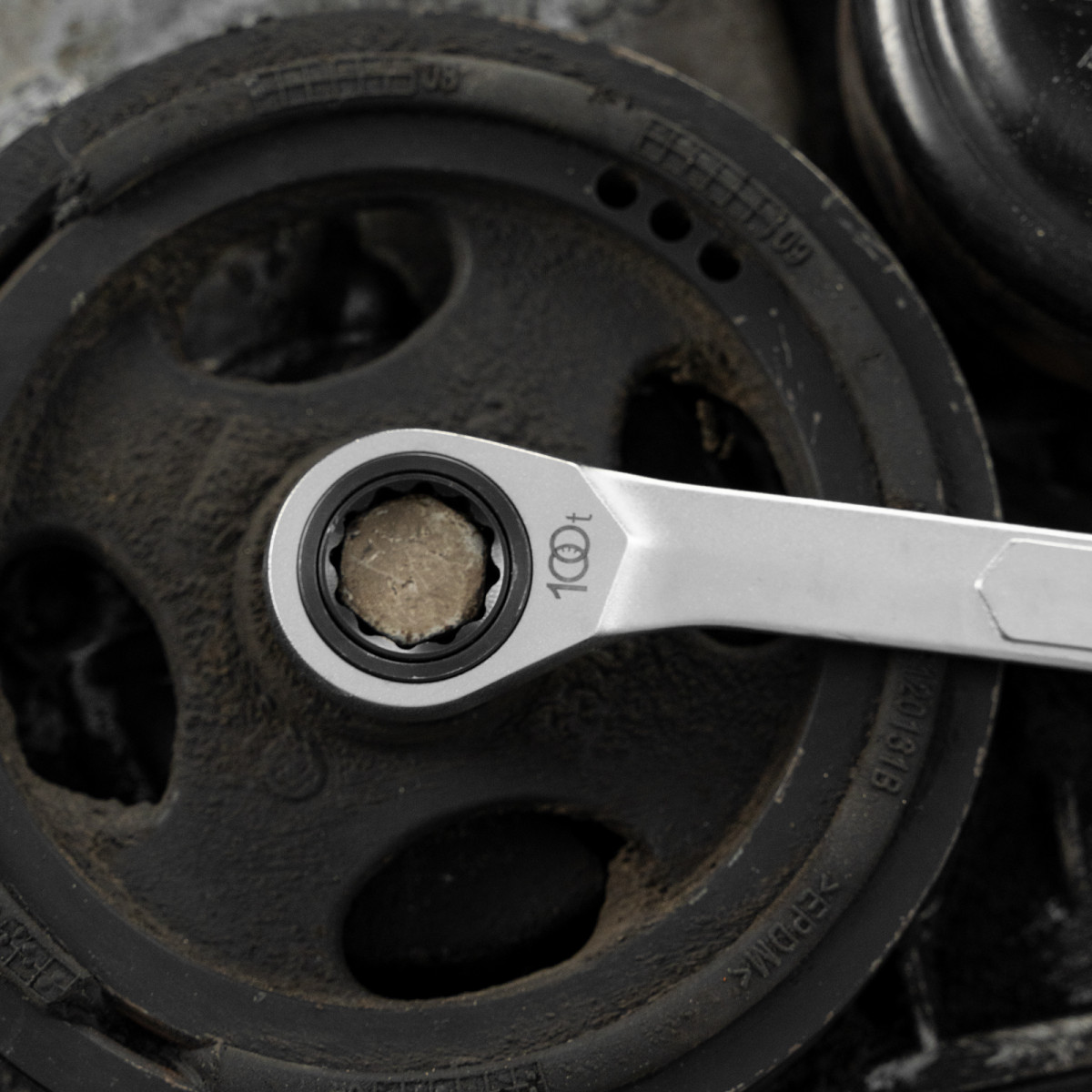 • Храповый механизм оснащен 100 зубцами, что обеспечивает плавность хода инструмента (шаг трещотки всего 3,6 градусов) и делает его удобным для работы в ограниченном пространстве.