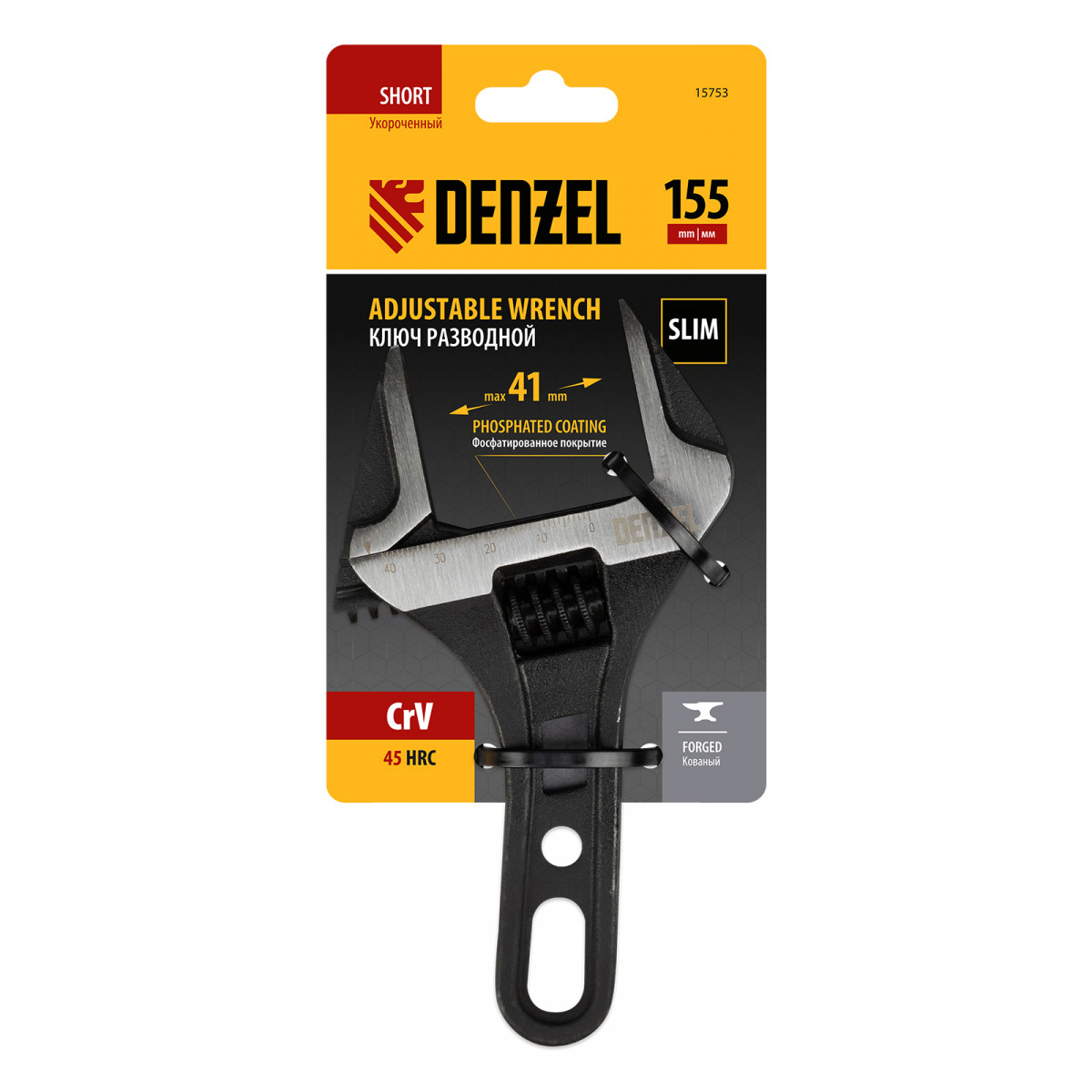Ключ разводной 155 мм, CrV, кованый, укороченная рукоятка Denzel