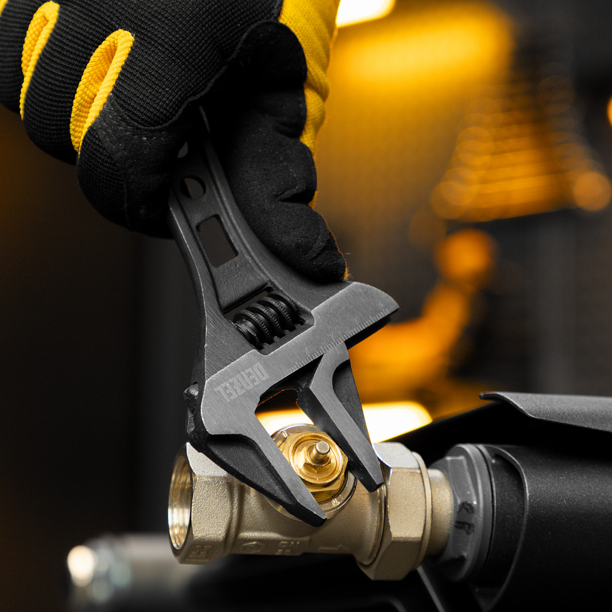 - Удобная эксплуатация — метрическая линейка на ключе помогает выставить нужный размах зева.