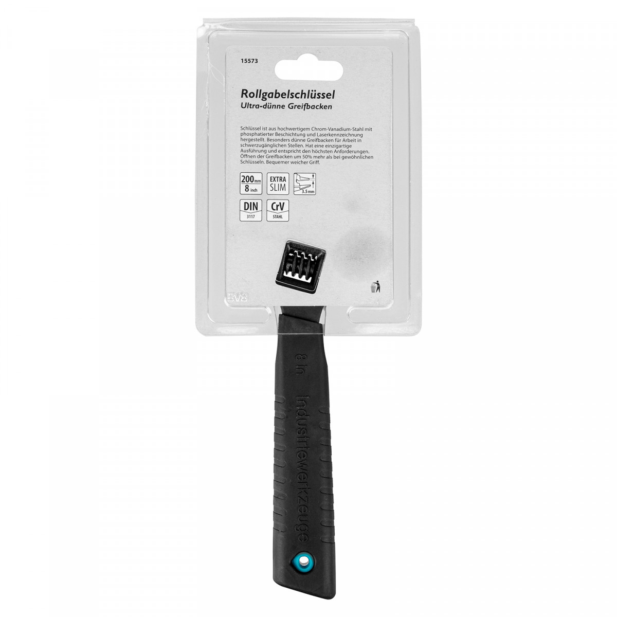 Разводной ключ Gross 15573 длиной 200 мм, из стали CrV, с ультратонкими губками, оптимален для монтажа и демонтажа крепежных элементов диаметром до 38 мм. Имеет широкую область применения: сантехнические работы, мелкий бытовой ремонт, полупрофессиональное использование и т. д. Благодаря ультратонким губкам инструмент особенно удобен для работы в труднодоступных местах.