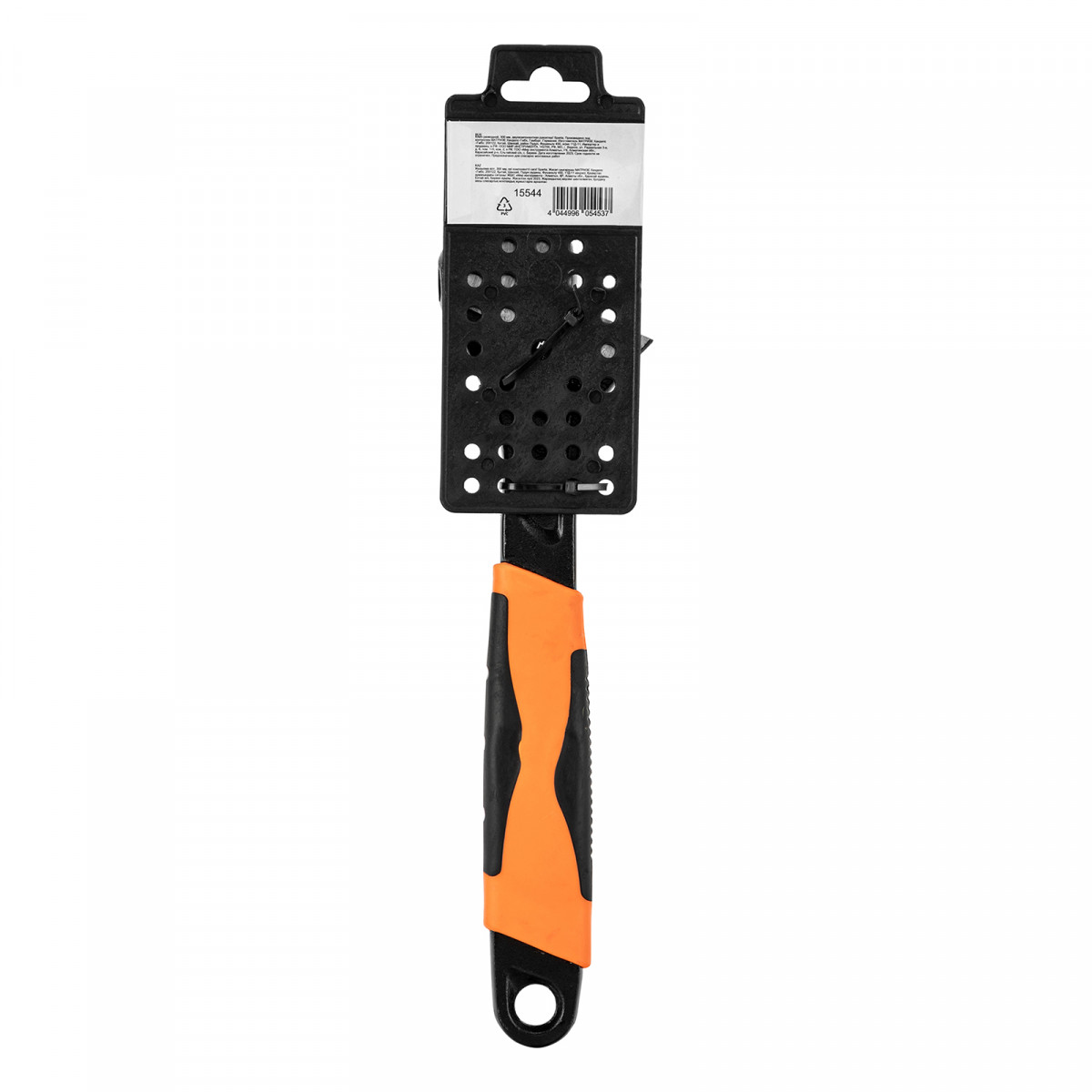 Разводной ключ Sparta 15544 длиной 300 мм, с двухкомпонентной рукояткой, имеет регулируемый зев и подходит для работы с любыми крепежными деталями диаметром до 35 мм, в том числе нестандартными. Инструмент заменяет целый комплект гаечных ключей и пригодится для бытового применения.