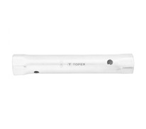 Ключ торцевой TOPEX с шестигранными головками. Его можно приводить в движение воротком, вставленным в отверстия, расположенные в корпусе ключа. Шестигранное сечение концов позволяет поворачивать торцевой ключ с помощью плоского гаечного ключа.
