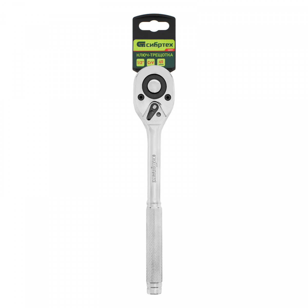Ключ-трещотка 1/2", 45 зубьев, цельнометаллический, с быстрым сбросом, CrV, хром Сибртех