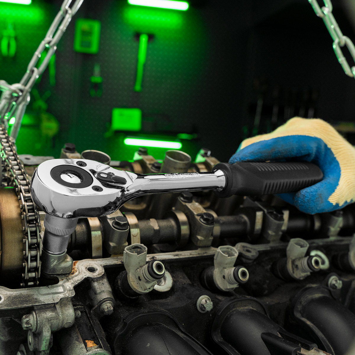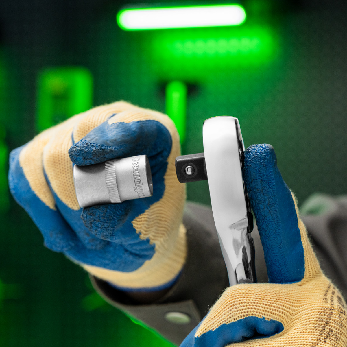 • Надежная фиксация — шариковый замок крепко удерживает торцевую головку, поэтому она не соскочит во время работы.
