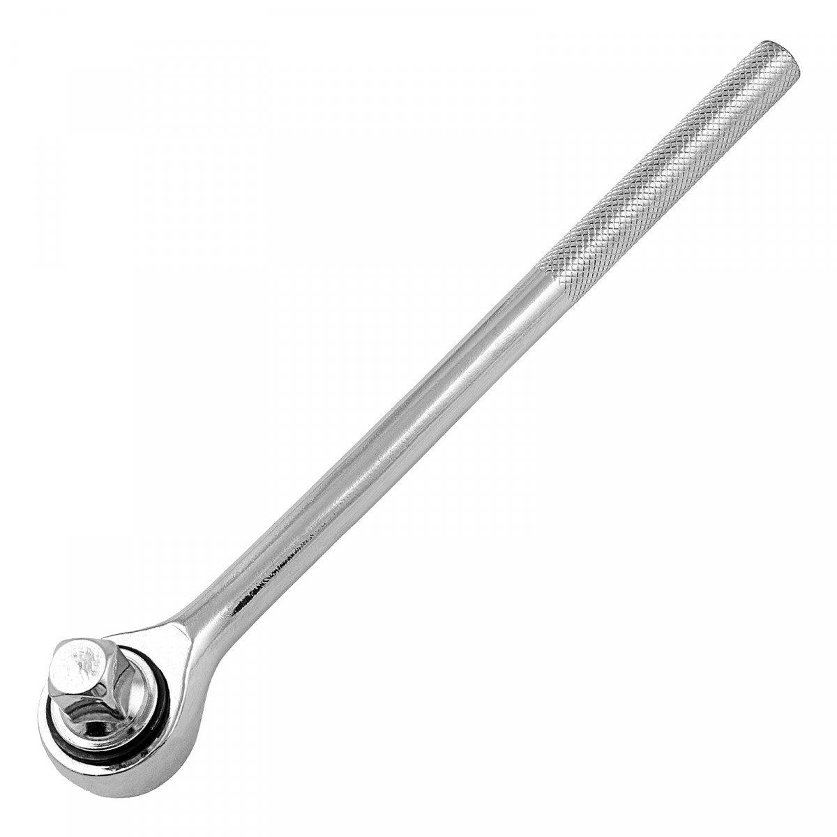 Ключ-трещотка Sparta 140605 из стали CrV, с присоединительным квадратом 1/2" и переключателем, применяется для монтажа и демонтажа болтов и гаек при помощи торцевых головок. Храповой механизм облегчает работу в ограниченном пространстве. Инструмент пригодится в ремонтной мастерской, автосервисе, а также дома или на даче.