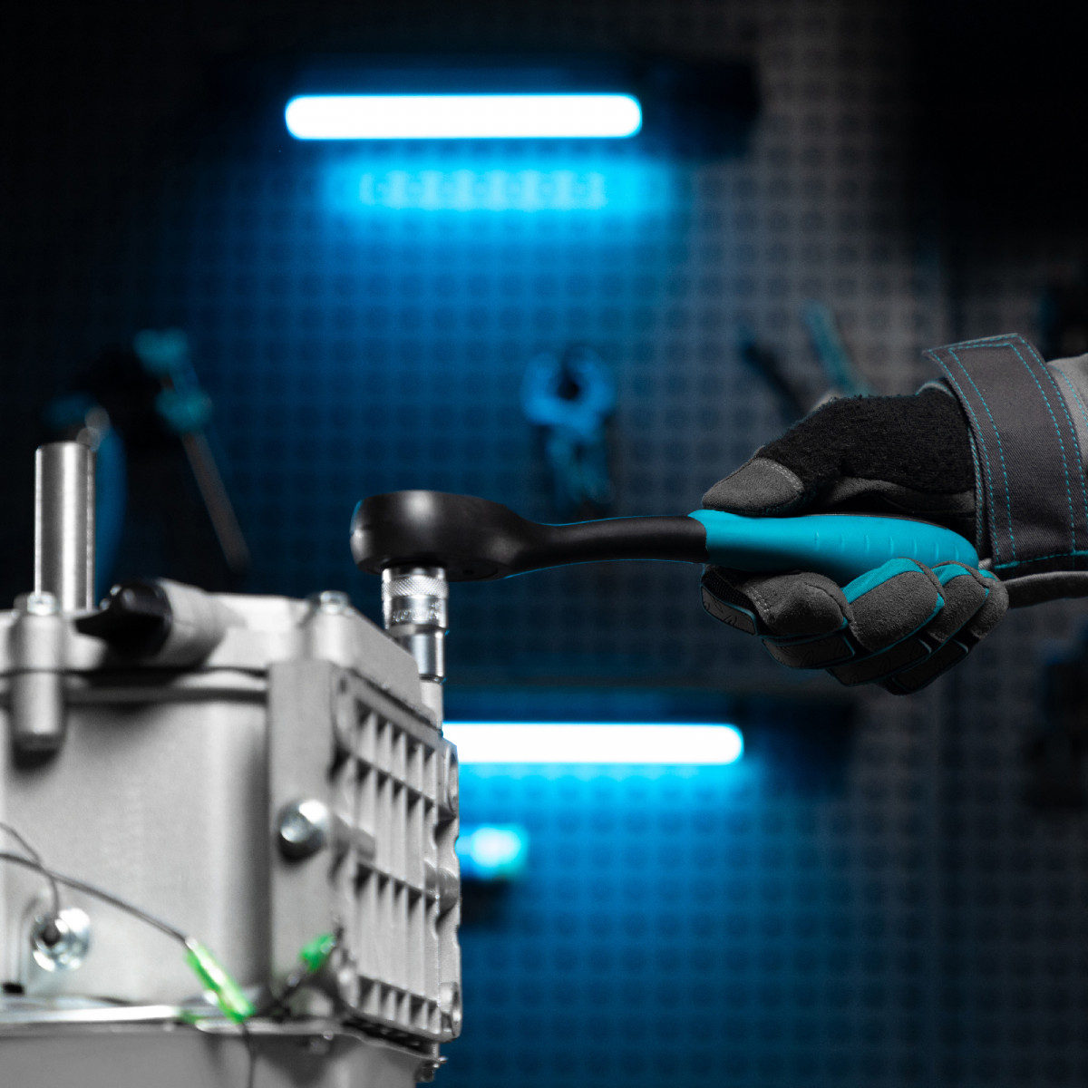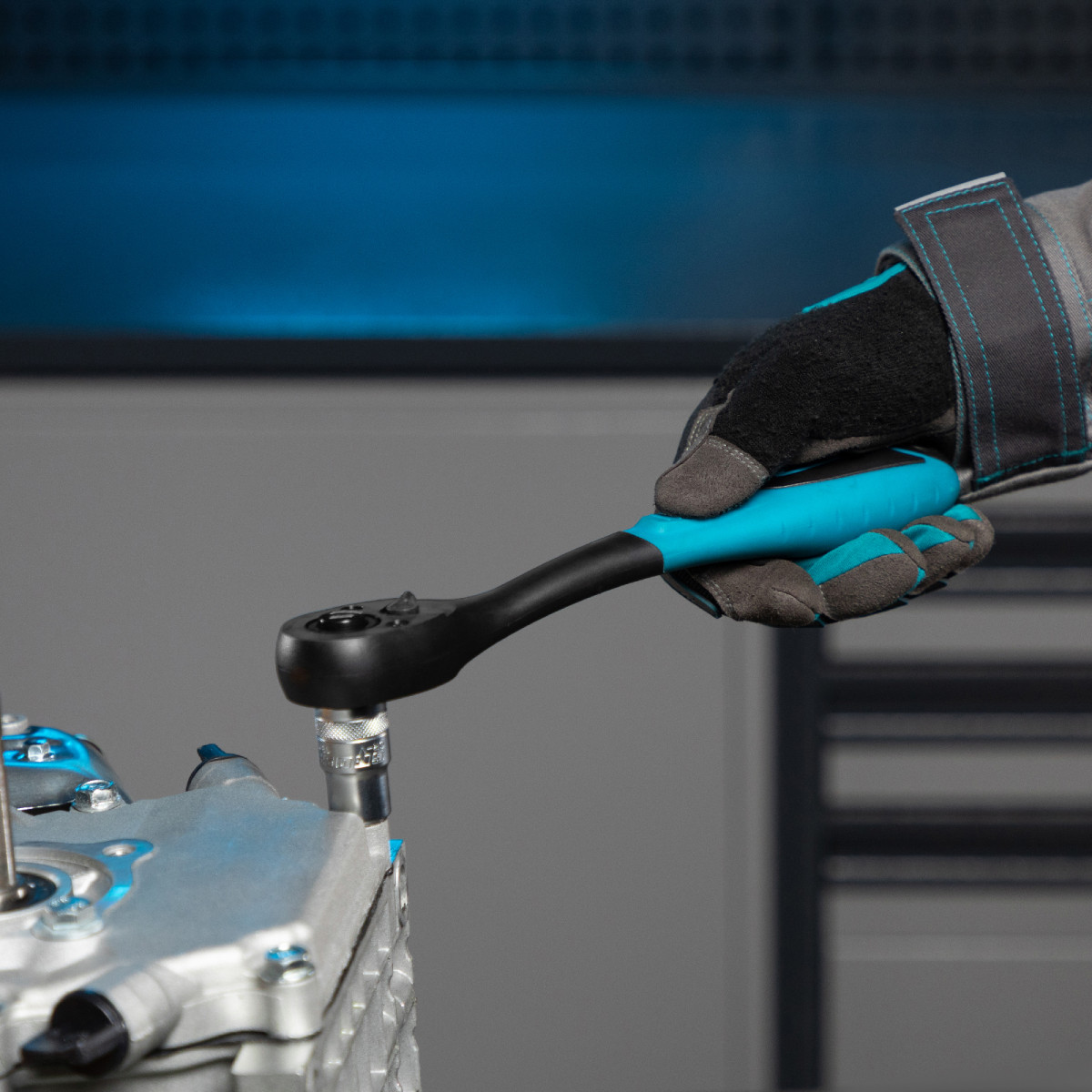 • Быстрый переход от монтажа к демонтажу — флажковый переключатель позволяет мгновенно изменить направление вращения храповика.