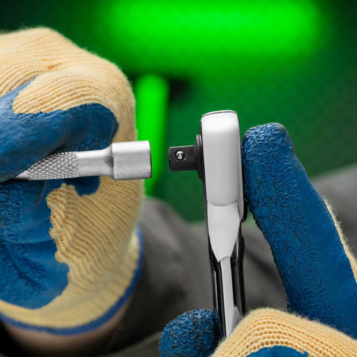 • Надежная фиксация — шариковый замок крепко удерживает торцевую головку, поэтому она не соскочит во время работы.