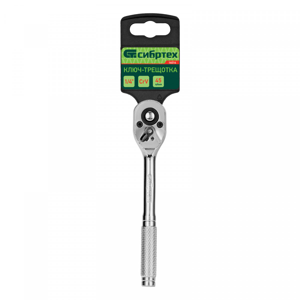 Ключ-трещотка 1/4", 45 зубьев, цельнометаллический, с быстрым сбросом, CrV, хром Сибртех