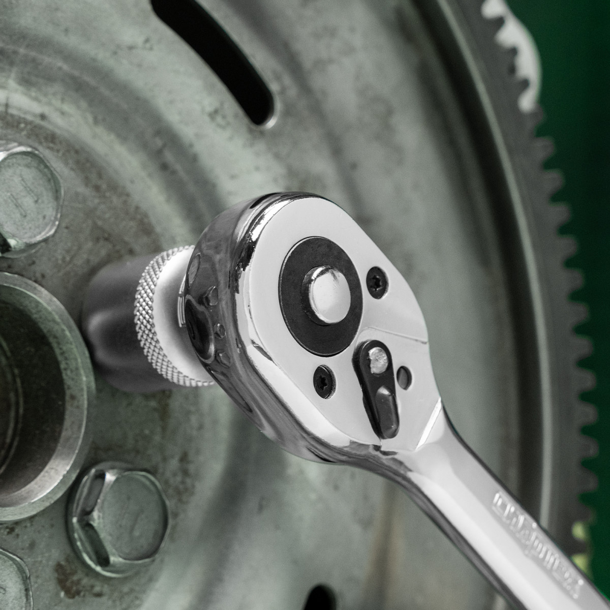 - Функция реверса — при помощи переключателя с металлическим флажком можно одним движением изменить направление вращения трещотки.