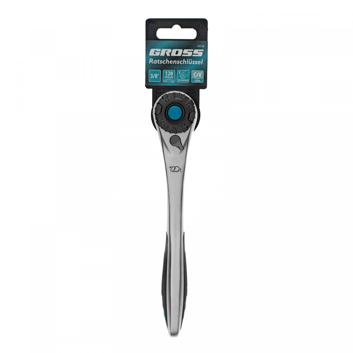 Ключ-трещотка 3/8", CrV, 120 зубьев, с быстрым сбросом, цельнометаллический, хром Gross