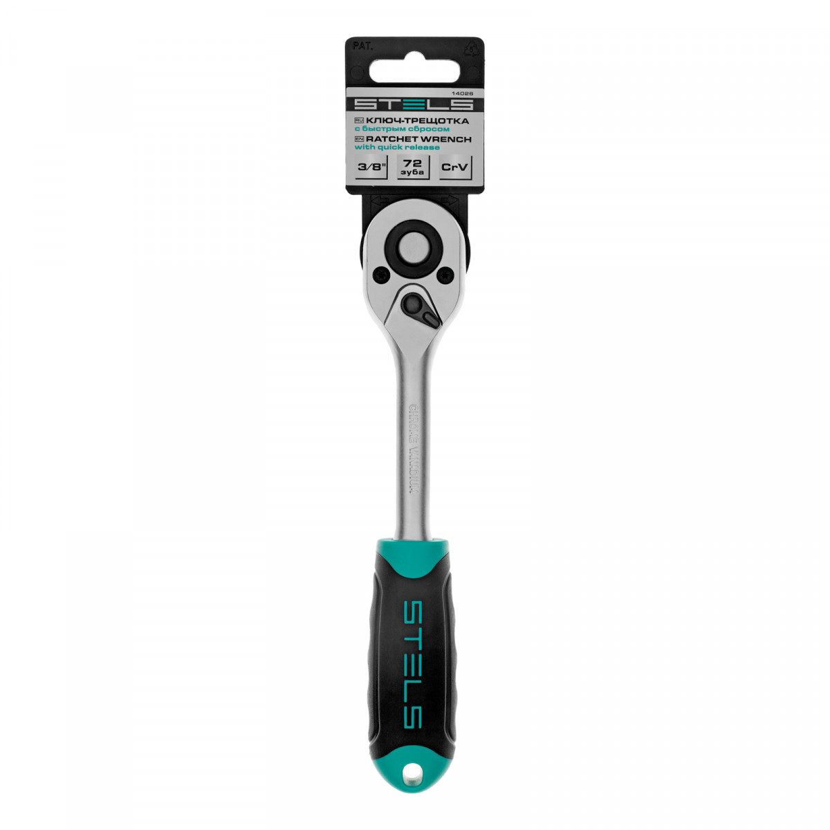 Ключ-трещотка 3/8", CrV, 72 зуба, с быстрым сбросом, матовый хром Stels