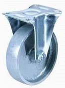 Колесные опоры неповоротные чугунные, платформенное крепление, подшипник скольжения.