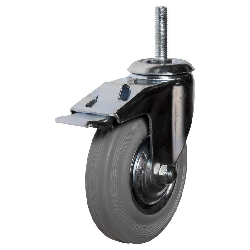Колесные опоры с тормозом из серой резины используется в производстве мебели, медицинского и торгового оборудования, используемого в помещениях.