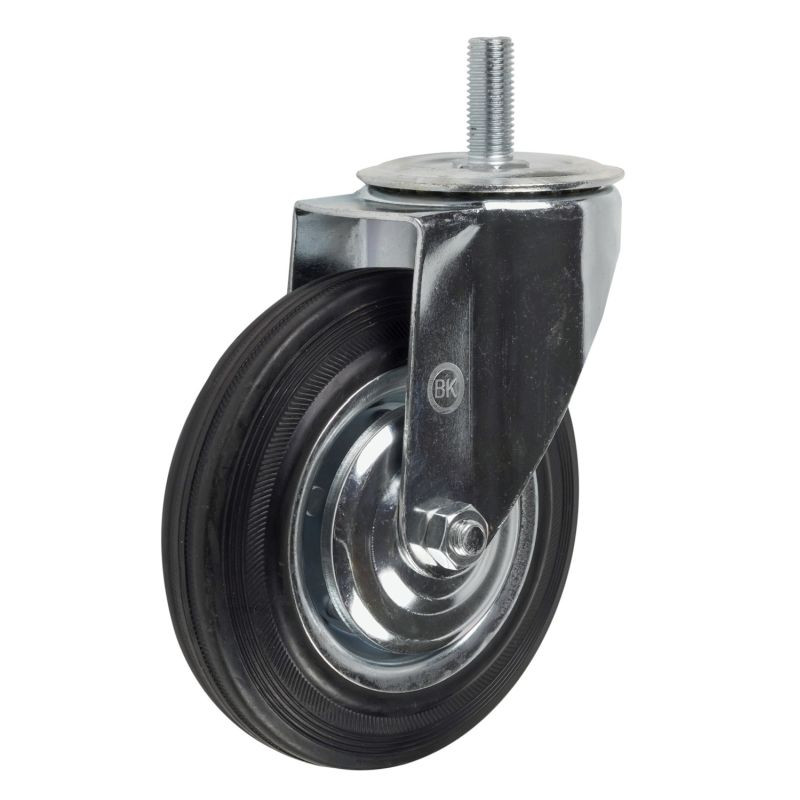 Колесные опоры промышленные поворотные, болтовое крепление. Колеса состоят из литой резиновой черной шинки и обода из оцинкованной листовой стали. Все колеса оснащены защитными кожухами. Оснащение роликовым подшипником, продлевает срок службы промышленного колеса вдвое.Режим работы от -25°С до 50°С. Шариковый подшипник в поворотном механизме защищен пластиковым пыльником. Колеса для тележек такого типа применяют для работы как внутри, так и вне помещений, на неровных поверхностях.Колесо промышленное поворотное с болтовым креплением используется для перемещения различных грузов. Из-за своей невысокой цены и надежности, промышленные колеса незаменимы в строительных и складских работах. Данный вид колесных опор предназначен и для производства платформенных тележек и тачек.