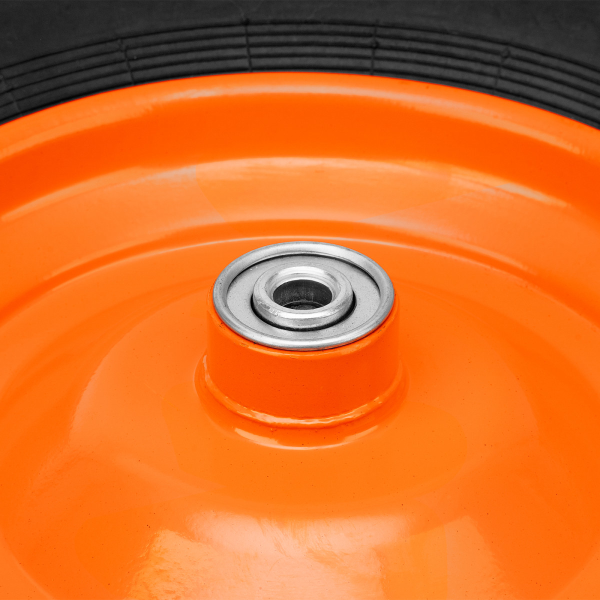 • Комфортная работа — пневматическое колесо эффективно поглощает вибрации даже при полной загрузке тачки.