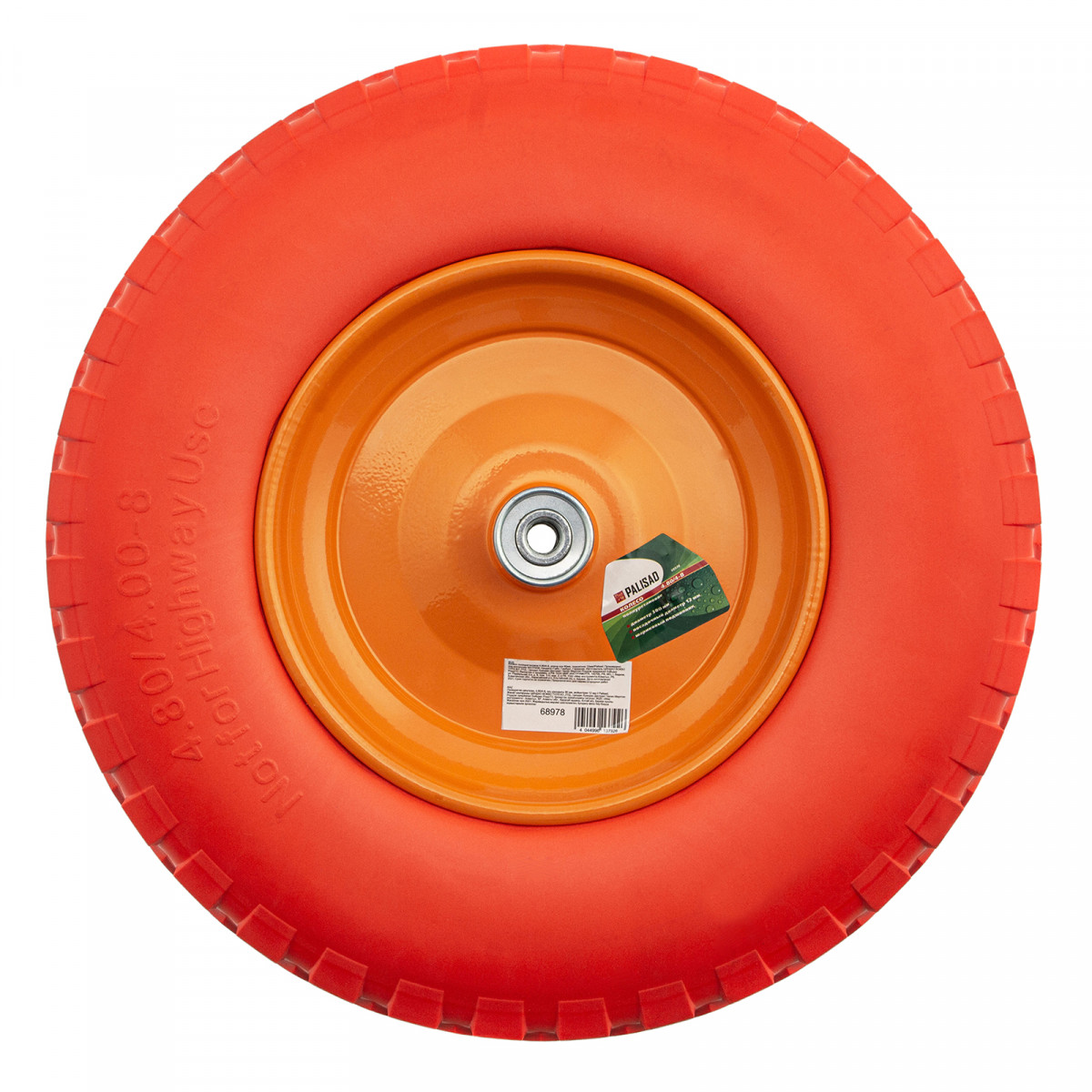 Полиуретановое колесо 4.80/4-8 Palisad 68978, с подшипником 12 мм и длиной оси 90 мм, используется для транспортировки грузов. Устанавливается на садовые тачки, подходит для Palisad 68918, 689183, 68935 и Сибртех 68968. Колесо из полиуретана не боится проколов, легко отмывается от грязи и не нуждается в подкачке в отличие от пневматических колес.