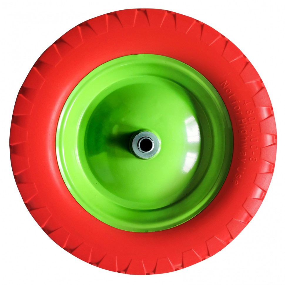 Полиуретановое колесо 4.80/4-8 Сибртех 689805 с длиной оси 80 мм и диаметром подшипника 20 мм — движущий элемент тачки Сибртех 68936. Непрокалываемое колесо подходит для использования в самых жестких условиях. В отличие от пневматических колес не требует подкачки, обслуживания и легко отмывается от грязи.