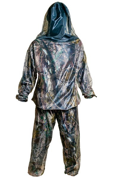 Комплект «ТелоХРАНИТЕЛЬ» включает в себя всё необходимое для комфортного существования в экстремальных условиях — от нательного термобелья до верхней противомоскитной одежды. Нижний слой всесезонного термобелья «ТелоХРАНИТЕЛЬ» представляет собой толстую хлопковую сетку, напоминающую лёгкую кольчугу, — между верхней одеждой и нательным слоем всегда есть воздушная прослойка. В жару воздух выполняет теплоотводящую функцию: одежда к телу не липнет, вентиляция отменная, кожа свободно «дышит». Если же холодно, воздух, наоборот, становится естественным «сейфом» для тепла, поддерживая температурный баланс организма. Дополнительное назначение сетки — защита от комарья: комариный хоботок может проткнуть верхний слой одежды, но до тела не достанет. Верхний слой комплекта «ТелоХРАНИТЕЛЬ» представляет собой тонкую полиэфирную сетку, через которую не пролезет ни один кровосос. Хелицеры (кусательные механизмы) клещей просто скользят по поверхности сетки; толстые жала ряда насекомых (слепней, шершней, оводов