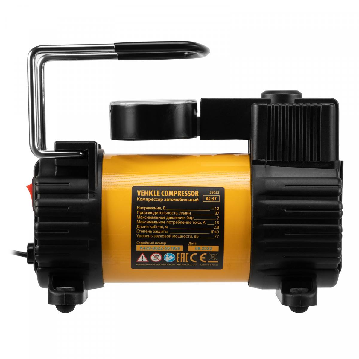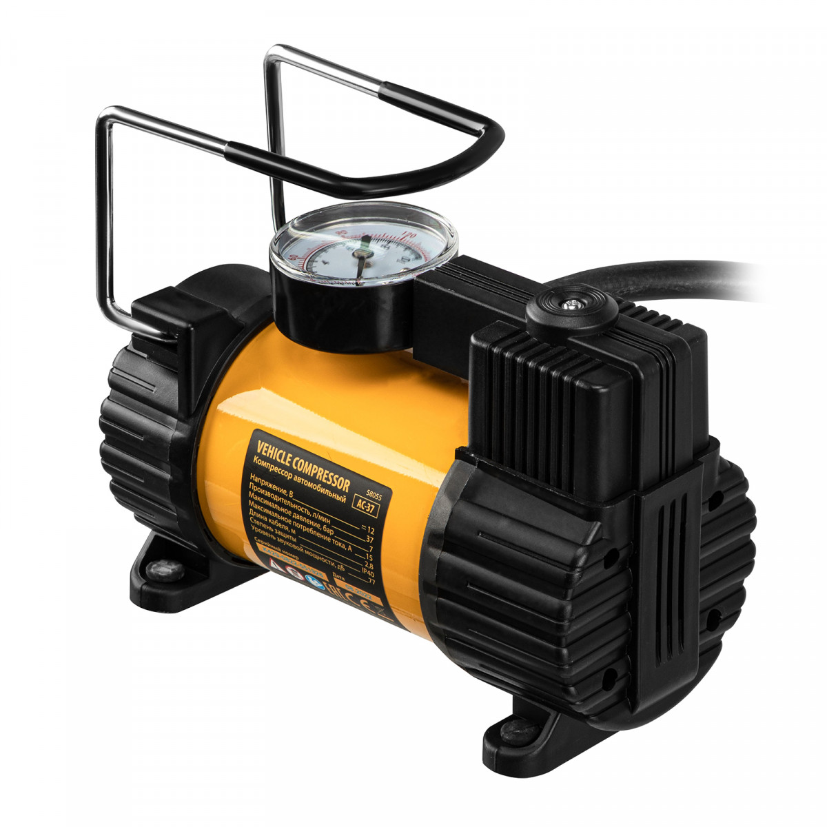 Автомобильный компрессор Denzel AC-37 58055 с автомобильным предохранителем работает от бортовой сети 12 В, обеспечивает давление 7 атмосфер и производительность 37 л/мин. Служит для накачивания шин, резиновых матрацев, надувных лодок и других изделий — для этого предусмотрены различные насадки. Компрессор пригодится в гараже, будет полезен в дальней поездке, а также во время отдыха на природе.