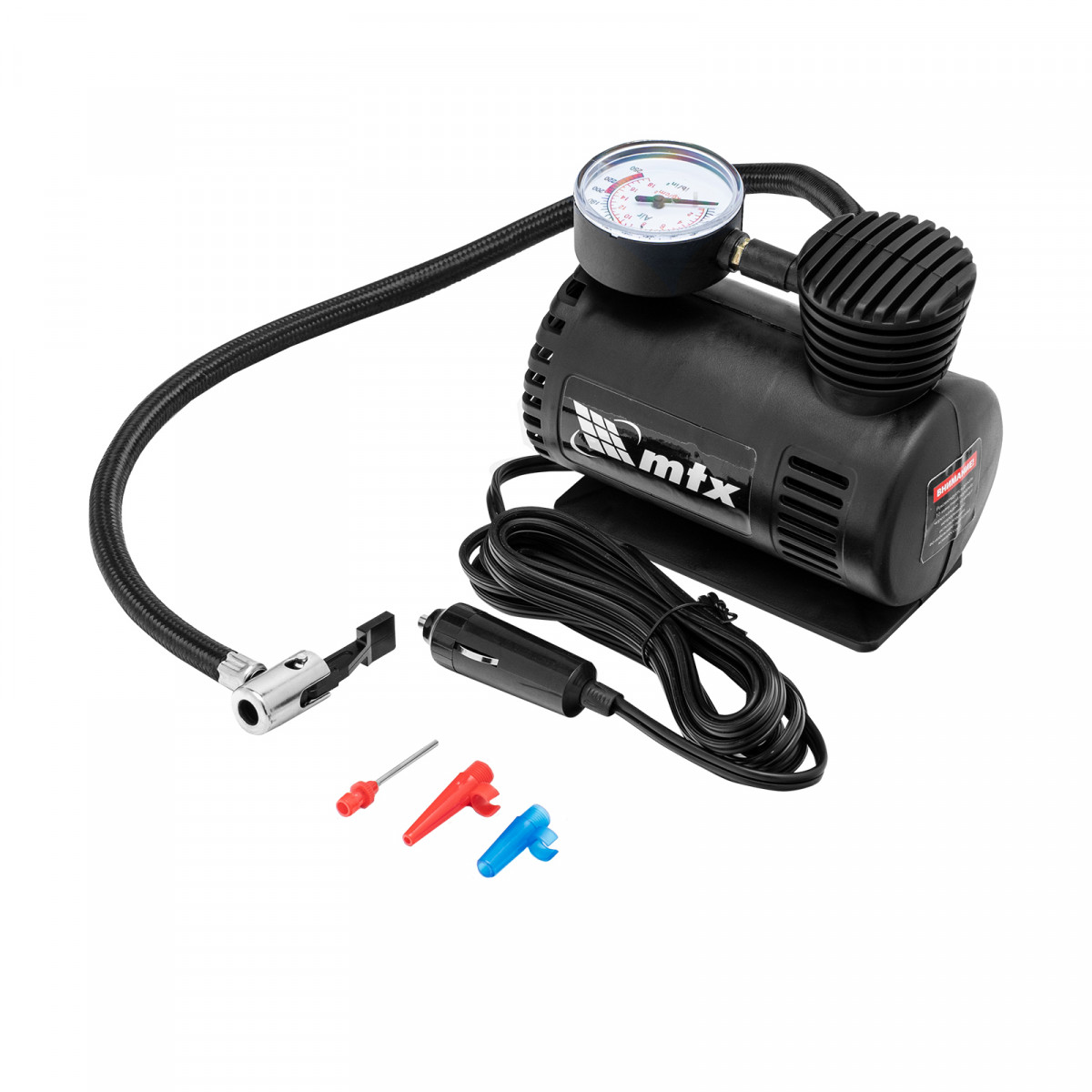 Автомобильный компрессор MTX C-12 58100 производительностью 12 л/мин обеспечивает давление до 17 атмосфер и питается от прикуривателя 12 В. Используется для накачки шин, а также мячей, матрасов, лодок и другого инвентаря. Компрессор поршневого типа способен накачать колесо R16 за 10 минут. Устройство пригодится в поездке, на даче, во время отдыха на природе.