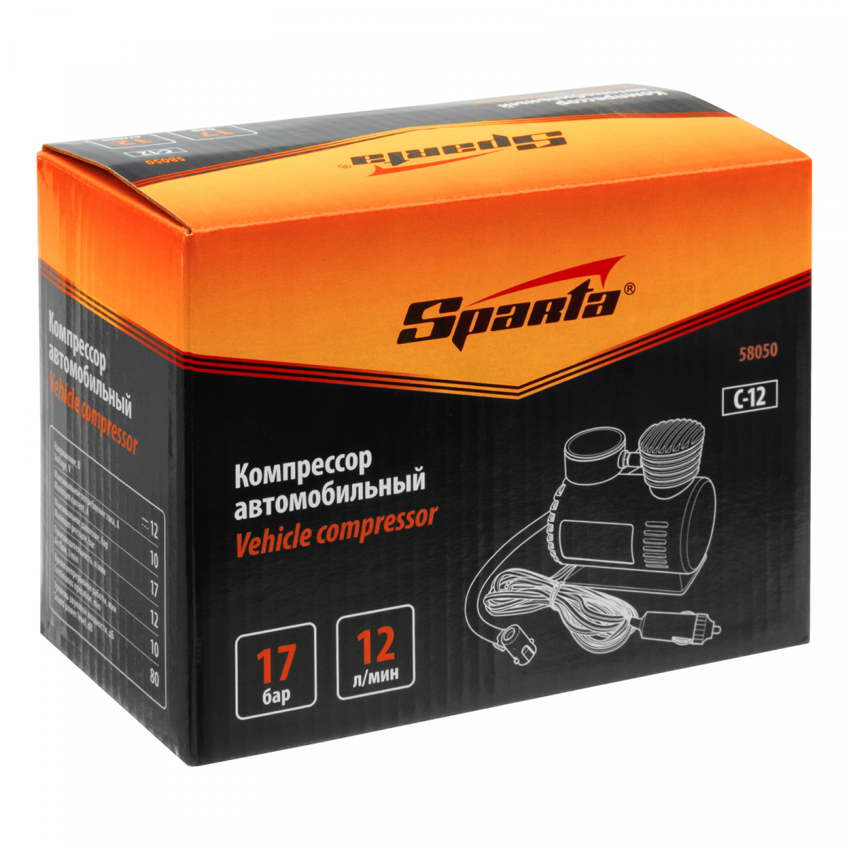 Автомобильный компрессор Sparta C-12 58050 производительностью 12 л/мин обеспечивает давление до 17 атмосфер и питается от прикуривателя 12 В. Используется для накачки шин, а также мячей, матрасов, лодок и другого инвентаря. Компрессор поршневого типа способен накачать колесо R16 за 10 минут. Устройство пригодится в поездке, на даче, во время отдыха на природе.