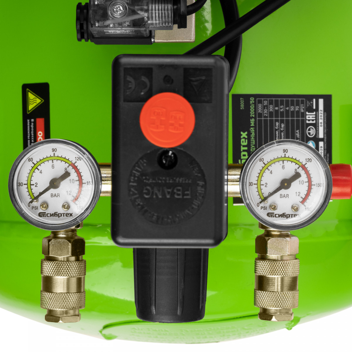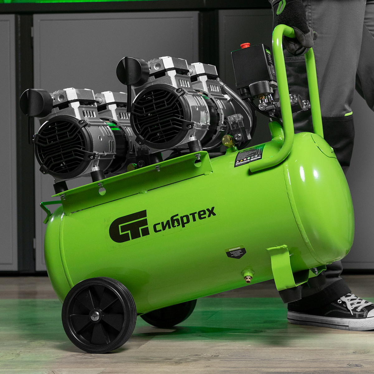 Компрессор безмаслянный малошумный МБ 2000/50, 2000 Вт, 50л, 300 л/мин Сибртех