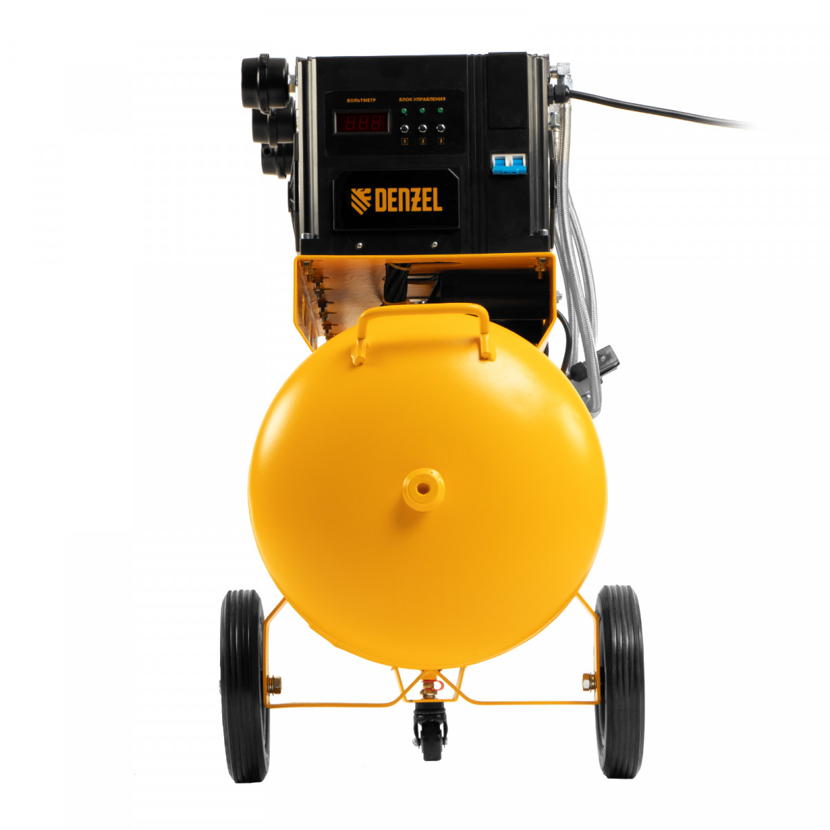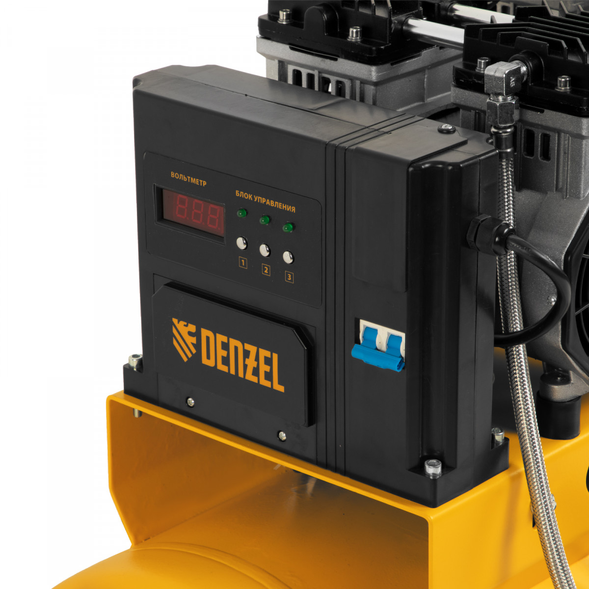 Компрессор безмасляный, малошумный DLS 2250/100, 2250 Вт, 3x750, 100 л, 410 л/мин блок управления/ Denzel