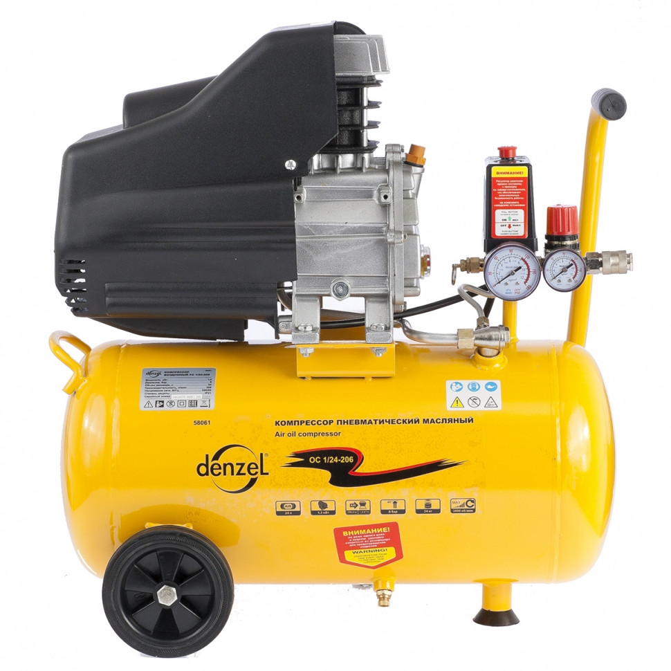 Пневматический компрессор DENZEL 58061 - это портативный аппарат для сжатия воздуха и накоплении его в ресивере. Производительность 206 л/мин позволяет использовать агрегат для накачки автомобильных шин, выполнения малярных работ не большого объема, а также для продувки (очистки) узлов или отдельных деталей.