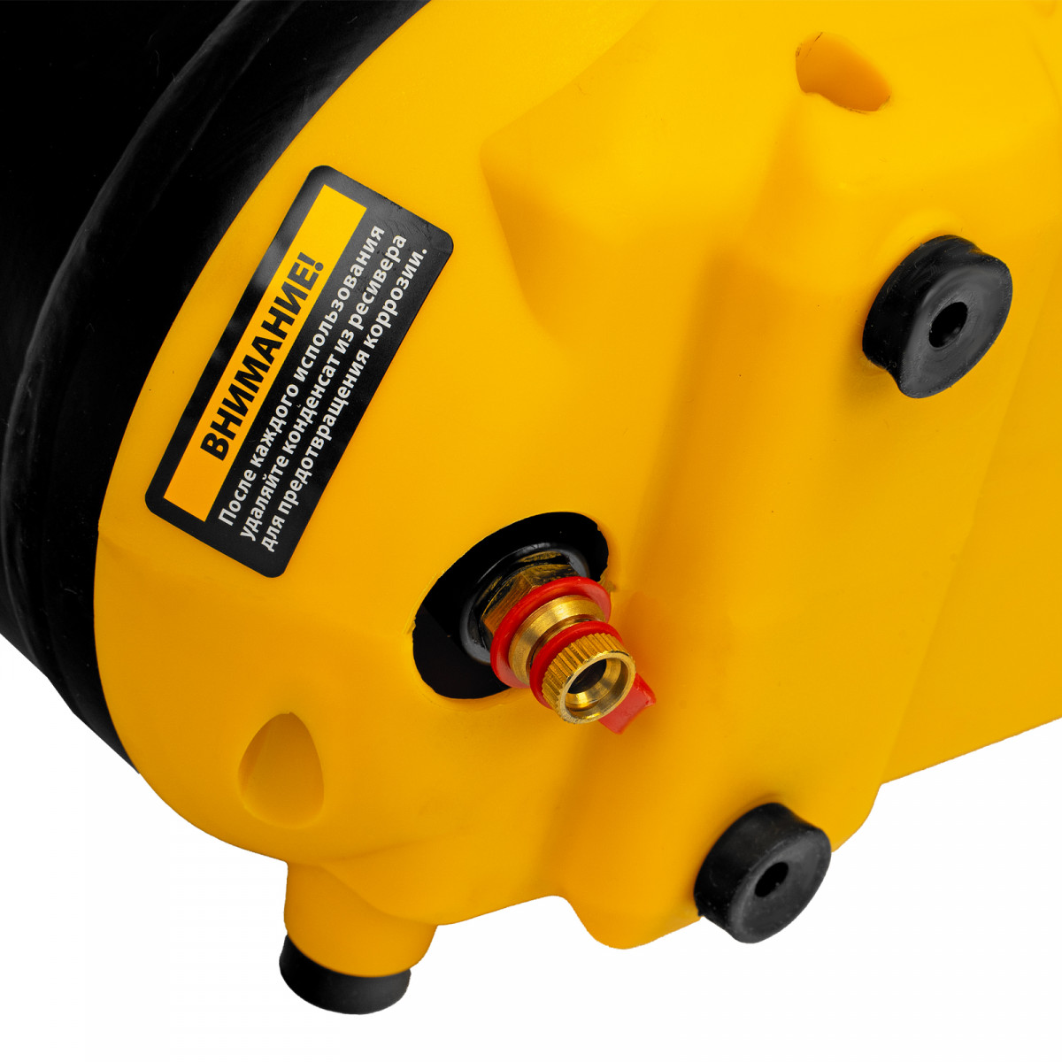 • Ресивер объемом 5 л — несмотря на портативное исполнение, устройство накапливает достаточный запас сжатого воздуха для бесперебойной работы.