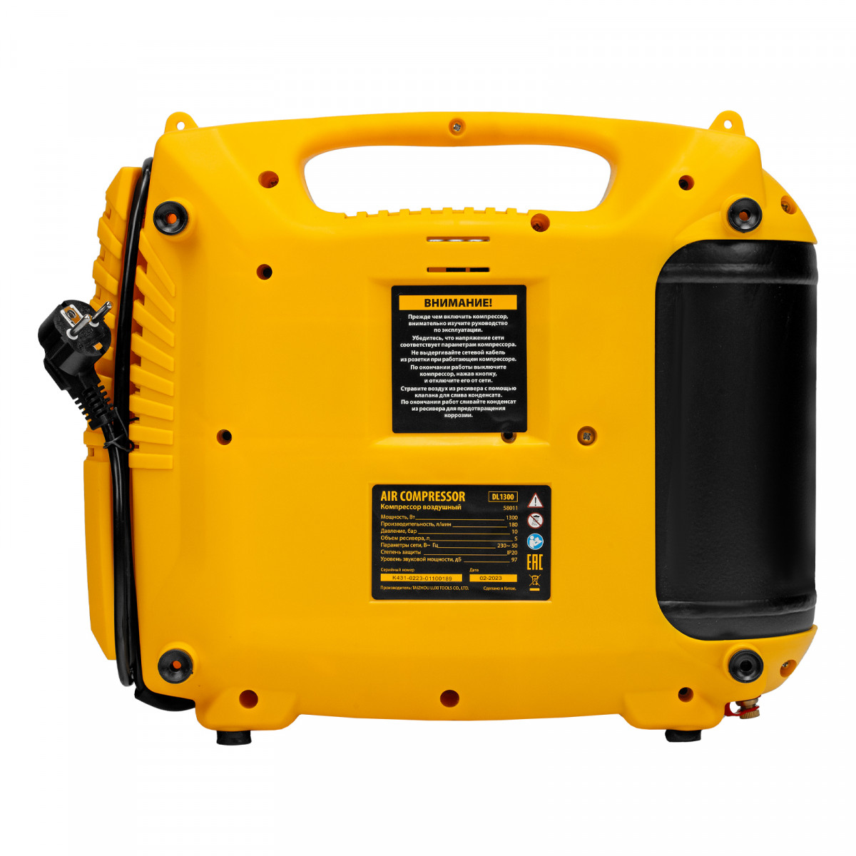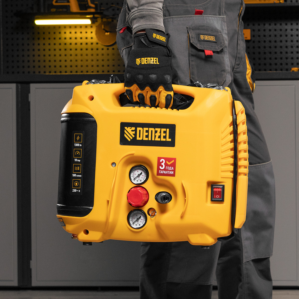 Компрессор воздушный DL1300, 10 бар, 1,3 кВт 180 л/мин 5 л, с набором аксессуаров Denzel