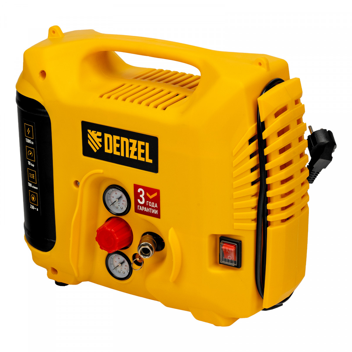 Компрессор воздушный Denzel DL1300 58011 мощностью 1,3 кВт, с максимальным рабочим давлением 10 бар, обеспечивает производительность 180 л/мин и поставляется с набором аксессуаров. Предназначен для обеспечения сжатым атмосферным воздухом нейлеров, степлеров, продувочных пистолетов, окрасочных и мовильных пистолетов и других пневмоинструментов, не требующих большого объема воздуха. Компрессор идеален для накачивания автомобильных шин, лодок, матрасов, мячей и прочих надувных изделий, а также для продувки труб водоснабжения.