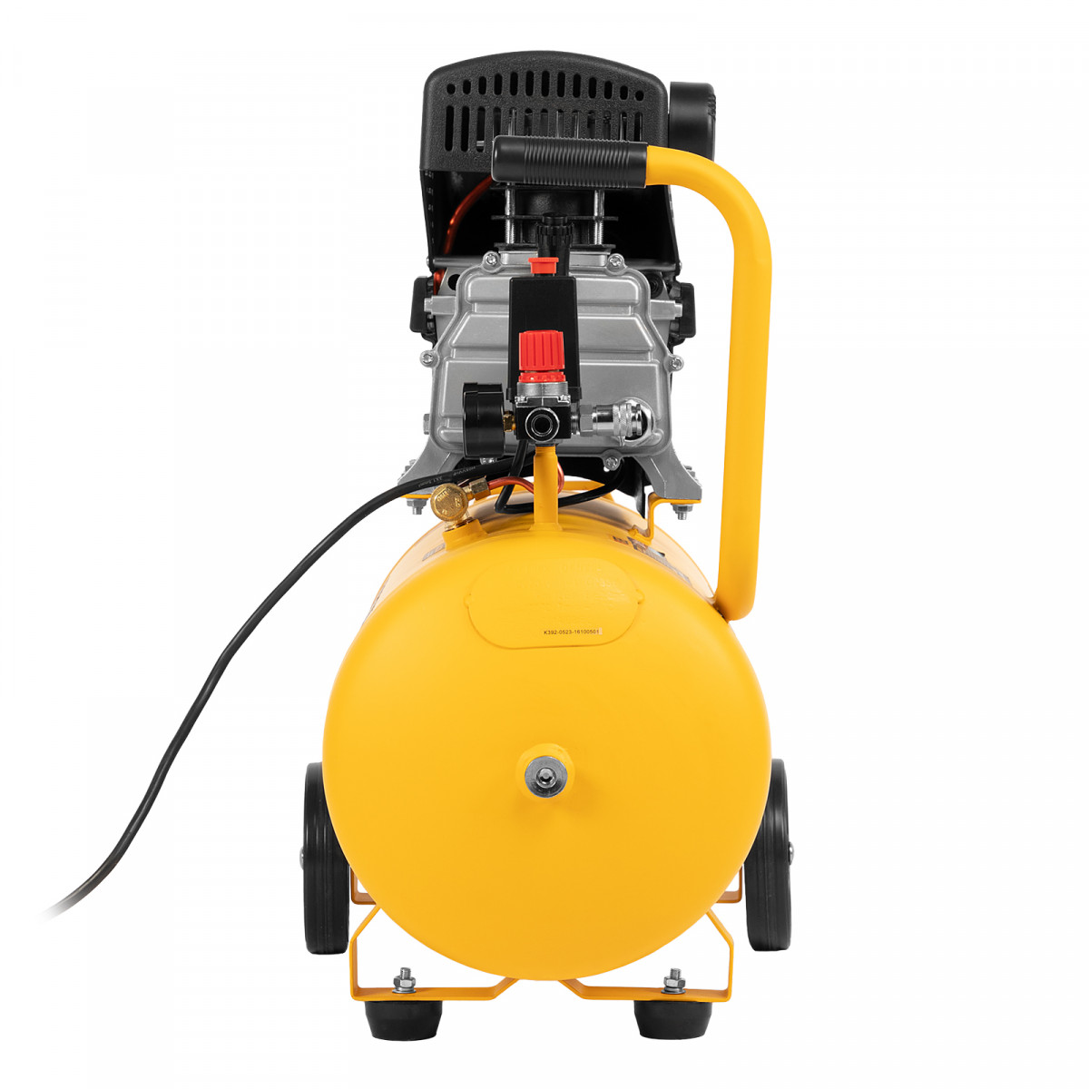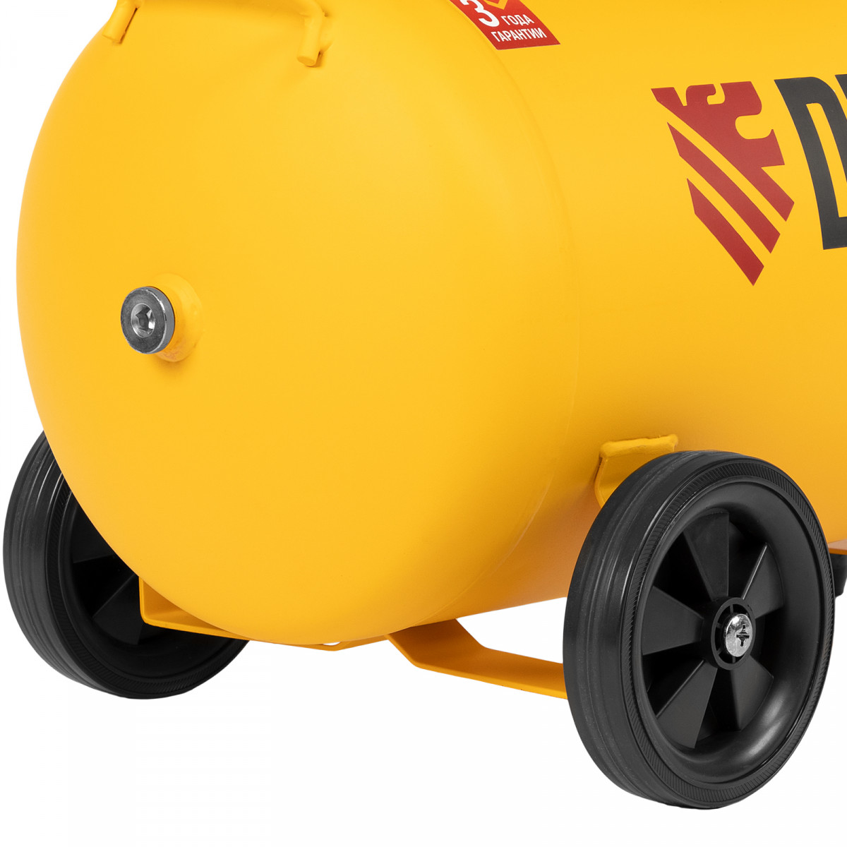- Мобильность — ручка и колеса облегчают перемещение компрессора по рабочей площадке.