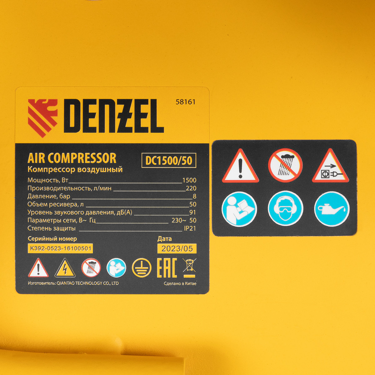 Воздушный компрессор с прямым приводом Denzel DC1500/50 58161 мощностью 1,5 кВт и производительностью 220 л/мин, с объемом ресивера 50 л, используется для подачи сжатого воздуха к пневмоинструменту, например, пневмогайковерту, пневмодрели, пневмостеплеру, пневмозубилу. Благодаря использованию смазочного масла, которое снижает износ деталей, компрессор выдерживает длительную работу и подходит для профессионального применения в автомастерской, гараже или на строительной площадке.