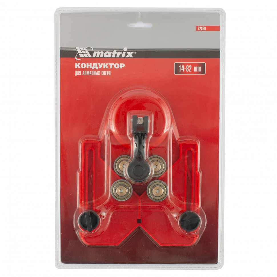 Кондуктор Matrix 72830 имеет 4 подшипника, позволяющих максимально точно позиционировать алмазные сверла и коронки размером 14-82 мм. Препятствует сдвигу оснастки и облегчает засверливание. Простой механизм фиксации позволяет за несколько секунд установить оснастку в нужное положение, экономя время мастера. Изделие используется для работ по керамической плитке, граниту, керамограниту, стеклу и мрамору.