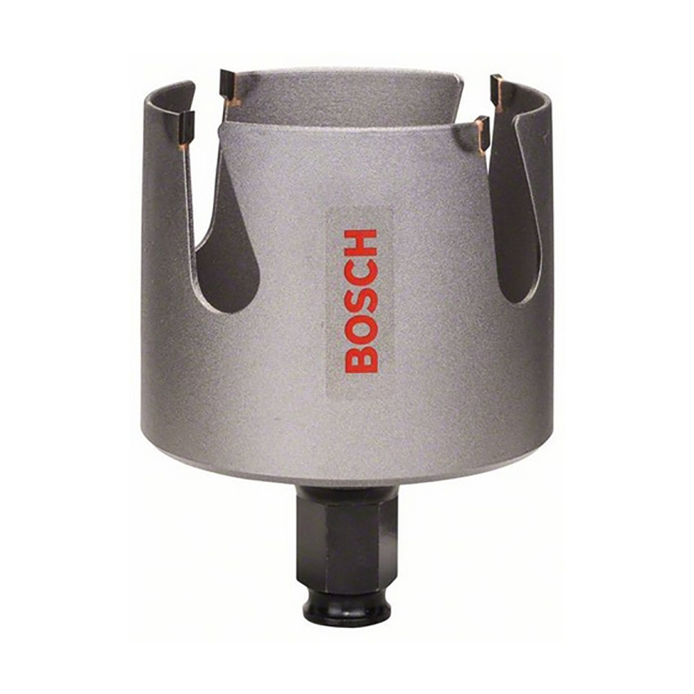 Пильная коронка Bosch 2608584766 применяется совместно с дрелями, а при использовании переходника может применяться и в перфораторах. Данная коронка Multi Construction предназначена для работы как по твердым, так и по мягким материалам. Быстрое и непрерывное сверление обеспечивается наличием каплеобразных пазов, через которые происходит выброс стружки, что делает работу эффективнее. Твердосплавные зубцы с алмазной заточкой обуславливают большую производительность и долгий срок службы оснастки. С такой коронкой используют переходник Power Chenge. С его помощью осуществляют быстрое и надежное крепление, а также извлечение оснастки и центрирующего сверла буквально одним щелчком. Для качественного сверления необходимо правильно подбирать частоту вращения и охлаждение. Находит широкое применение при строительных или ремонтных работах.